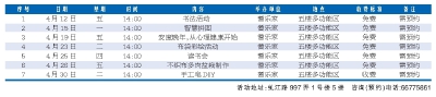 宝山路街道综合为老服务中心耆乐家4月主题活动安排表
