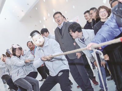 2019年12月27日,由半淞园路街道党工委、办事处,上海世博城市最佳实践区商务有限公司共同主办,世博城市最佳实践区党建(群团)服务站承办的“炬”力凝神——世博城市最佳实践区第四届迎新运动会在世博创意秀场召开。半淞园路街道办事处、上海世博城市最佳实践区商务有限公司、上海票据交易所、国家统计局上海调查总队、黄浦公安分局南浦治安派出所、世博实践区企业负责人、以及公益新天地园区等多位领导、嘉宾出席了开幕仪式。 世博实践区来自8家单位的火炬接力选手用青春和体育精神传递着满满的正能量,高举运动会的圣火进入世博创意秀场。 半淞园路街道办事处主任漆小云致词,向运动员和裁判员表示祝贺,向世博城市最佳实践区商务有限公司和南浦治安派出所表示感谢,希望园区白领们通过体育比赛,愉悦身心、加强合作、增进友谊,并预祝运动会圆满成功。 八位领导嘉宾一起上台,共同点燃“炬”力凝神——上海世博城市最佳实践区第四届迎新运动会“圣火”!世博城市最佳实践区商务有限公司董事长虞浩宣布运动会正式开幕。 此次运动会共设6项比赛项目:包括集体项目趣味拔河和螃蟹运球以及个人项目:时尚分类、百步穿杨、足球保龄球、淞园华容道等。此次迎新运动会吸引了近300位运动员的参赛,所有参赛选手赛出水平、赛出风格,共度了一个难忘、健康、快乐的团体时光。活动结合半淞园独有的地域文化与世博实践区园区特有的文创活力和青春激情,旨在通过运动会,凝心聚力,不忘初心,共创半淞园和世博实践区2020年新的辉煌。