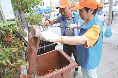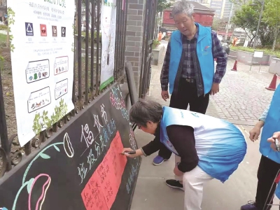 黑色、棕色、红色、蓝色四种垃圾桶依次排开,党员志愿者进行巡逻宣传和复查分拣,墙上张贴的争创垃圾分类示范户活动吸引人驻足观看……自《上海市生活垃圾管理条例》实施以来,几乎每天都能在北外滩街道三多里小区看到这样的场景。 “垃圾分类绿色账户积分投放时间是每天早晨7点至8点半和晚上6点至7点半。”小区里正在忙碌的垃圾分类志愿者这样介绍投放点的运行情况,“现在,全小区87户居民都在这里投放生活垃圾,原有的垃圾桶撤桶并点之后,生活环境比起以往也好了很多。” 《上海市生活垃圾管理条例》在7月1日施行,北外滩街道用“家园党建”的模式迎接建党98周年,同时通过发挥辖区基层党组织、社区党员、楼宇党员的示范带头作用,为垃圾分类工作注入强劲的“红色动力”。 “示范户评选”推动老旧小区垃圾分类工作 三多里是典型的上海老式石库门里弄小区,居民们早已习惯将垃圾直接混装扔进小区门口的垃圾桶里。如何让垃圾分类观念深入居民心中?如何帮助居民主动养成良好的垃圾分类习惯? 景星居民区党总支在小区内推出“三多里争创垃圾分类示范户”评选活动,每天及时公布每户居民每天的垃圾分类情况。负责绿色账户点位工作的垃圾分类管理员进行评判居民每天的垃圾分类情况,如果分类正确就在其房屋所处表格内贴上红五星,如果混装不分类或者分类错误则“空白”处理,月底再按照红五星的数量评选出当月的垃圾分类示范户。 为此党员必须做出表率,起到模范带头作用。陈雅芳原本已经“人户分离”,但自从看到悬挂日排行榜后,便时不时地回家认真处理四分类垃圾。81岁的高仁元是独居老人,自从有了示范户评选后就和湿垃圾较起了真,虽然每天产生的湿垃圾不多,但她每天都坚持分类,将一颗颗豆子都小心翼翼的分清楚。 “每天的步数都超过1万步,徒手抓垃圾都是平常的事情,”63岁党员顾福音主动当起了垃圾分类志愿者,每天要进行4小时的巡检和垃圾桶复检。其所在的党员志愿者团队在垃圾分类工作中创造了令人欣喜的成绩:在区级检查中,三多里分拣率抽检的纯净度是100%,完全没有四分类垃圾混装的情况。顾福音说,“现在复检最突出的问题还是湿垃圾破袋,每次看到居民投放时都会进行宣传,希望再接再厉,居民们能对垃圾要进行四分类越来越熟悉和习惯。” 在党员们的带动下那些原本觉得“分不分类无所谓”的居民开始坐不住了,每天进出小区时看见别人家的表格红彤彤一片,而自己家却一直“干干净净”,感觉很没面子。后来,他们不仅每天主动做好自己家的垃圾分类,而且经常凑在一起聊垃圾分类知识,争取赶超那些成绩优异的家庭。 居民区党总支书记徐莺说,目前垃圾分类的参与率已经达到90%以上,居民整体凝聚力大大增加,做好垃圾分类工作成为大家共同的目标,居民们还提出了不少改进的建议,比如封闭垃圾厢房的建设,误时垃圾桶的科学设置等。 (下转03版) (上接01版) 因地制宜“一小区一特色” 老城厢地区复杂多样,每个小区的情况各不相同,如果完全依照一种方案来推进垃圾分类工作,不但可能收效甚微,甚至还可能会适得其反。为此,街道各居民区党组织积极探索适合于所在居民区的垃圾分类推进方法,做到“一小区一特色”。 在三多里所在的景星居民区,各具特色的活动让居民们充分参与垃圾分类工作。比如在柳荫里小区,居民区党总支结合小区内家庭主妇多、女性党员占比高的实际情况,将这些每天与湿垃圾打交道最多的主妇们请到居委活动室,组织开展“垃圾分类主妇率先行”主题党日活动,号召大家做好生活垃圾源头分类的把关人。在居民区唯一的一幢独立公寓楼——公平大楼,居民区党总支以党员名字命名的“党员家庭服务室”为载体,邀请“沈文琪墨香乐园”书法兴趣室的沈文琪通过书法课的形式开展“垃圾分类从我做起“倡议承诺签名,让居民把自己书写并署名的垃圾分类书法作品带回家…… “996人群”怕扔不了垃圾?在提篮桥居委东海家园楼组长单国琦主动帮年轻人带垃圾,这也与家园党建文化楼组活动分不开。“有了归属感,为邻居多跑几次也无妨。”在党建引领下东海小区充分发挥“三驾马车”作用,业委会成员身兼多职,不仅做好业委会本职工作,还充当小区“吉祥三保”,即保洁员、保绿员、保安员,他们轮流值班、清扫家园、美化绿化,着重打造了2号楼家园党建绿色楼组,4号楼家园党建文化楼组,真正发挥居民自我管理、自我教育、自我服务的作用。 三联居委三铭小区最近集体通过居民“团购”方式迎来了新加装的水龙头,湿垃圾破袋之后洗手的问题终于能得以解决。三铭小区还以家园党建引领垃圾分类新时尚,引导社区党员在垃圾分类中“亮身份”、“亮承诺”、“亮成绩”。在唐山路577弄4号先锋楼中设立垃圾分类排行榜,以“红、橙、蓝、绿、金”5种颜色诠释五种正能量,对先锋党员户进行动态评比标注,创建“五彩三联党建”。 引领社区党员“亮身份”、“亮承诺”、“亮成绩” 围绕《上海市生活垃圾管理条例》的制定出台和市、区推进生活垃圾分类工作动员大会的有关精神,北外滩街道要求辖区党员不仅要当好垃圾分类“主角”,更要积极发挥在推广过程中的先锋模范作用,以争创垃圾分类“先锋楼组”、“先锋楼道”、“先锋模范”活动为契机