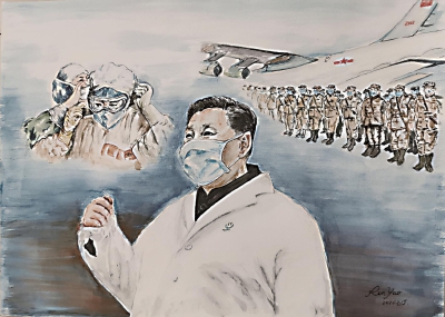 □记者 冯璐迪 新年伊始,新冠肺炎疫情席卷而来,令我们猝不及防。这是一个不同寻常的新年,疫情当前,战斗的身影中既有不分昼夜奋战在一线的医护人员,也有披星戴月的社区基层工作者,更有步履不停的生产者,当然还有每一位关心疫情变化的普通人。没有人是一座孤岛,生命的跃动与我们息息相关。 在这场没有硝烟的战争中,除了在四面八方涌入的物资援助,我们也不能忽视精神的力量。在长风一村,就有这样一位75岁的老党员陈仁尧,他用自己的画笔绘就了战胜疫情的决心,以文化的力量支援疫情。 小区里的“文化名人” 陈仁尧从小就热爱绘画,但是迫于工作上的压力,一直没有机会进行系统学习。他15岁便参军入伍,在部队服役了近30年才转业回沪,其后工作一直处于“连轴转”的状态,直到退休后,才有机会重拾儿时兴趣———报名参加了老年大学的国画学习班,师从梅若、范庆天等沪上名家,从最初的学习、临摹到如今尝试着各种不同风格的创作,陈仁尧享受着绘画带给他独有的乐趣。去年五一,他在小区内办了一场个人画展,50余幅大小迥异的画作在短短4天的时间内吸引了500多位观众,是社区内知名的“文化名人”。 同时,陈仁尧与妻子还经常参与社区的各项建设和决策,不仅积极参加各项募捐活动,也为社区的自治项目出谋划策。去年年初,陈仁尧夫妇所在的居民楼的电梯由于老化出现了故障,当时物业表示没有可供维修的零件,只能更换电梯,考虑到部分居民不同意更换,陈仁尧夫妇“挺身而出”,广泛征求意见,主动建议多作调研,结果发现其他厂商的零部件也可以适配于该小区的电梯维修,于是联系了物业进行维修,获得了楼内居民的一致称赞。 四幅画作,心系家国 疫情暴发后,尽管无法支援前线,但陈仁尧每天都通过各种途径密切关注着疫情的变化。“中华民族是任何力量都无法摧垮的伟大民族,一方有难,全国驰援,国人有险,全球华人倾全力助之,实在让人无比温暖和深深感动”,每当看到全民共同战“疫”的新闻,陈仁尧时常会感到无比动容,也由此创作了四幅与疫情防控题材相关的画作。 2月10日,习近平总书记察看北京地坛医院,并视频连线武汉重症患者收治医院、慰问一线医务工作者,他对大家说:“我们一定要树立信心,一定会胜利!”看了报道,陈仁尧很受感动,即创作水彩画《一定会胜利》,中间为习近平当时形象,背景分别是解放军驰援武汉和全国医务工作者支援武汉的场景;随后几天,陈仁尧在网上看到一则短视频,内容为浙江越剧演员认真录制声援武汉抗“疫”的片段,祝愿全国同心,早日战胜疫情,内有二句:“待到白堤桃花开,你我再聚西湖来。”故有感而创作了水彩画《“疫”后再聚西湖来》。 而为全国人民所崇敬的钟南山院士,也成为了陈仁尧的创作题材,他为钟南山院士创作了一幅名为《必胜》的钢笔水彩画,画当中是为战胜新冠肺炎疫情而全身心投入的钟南山院士,其坚毅的形象充满必胜的信念,背景是高速援建火神山医院和上海医护人员支援武汉抗“疫”时的神情。第四幅作品是国画,陈仁尧取名为《“疫”后天更美》,他表示:“我坚信全国同心,定能早日战胜疫情,而且疫情过后一定天更蓝,花更香!”