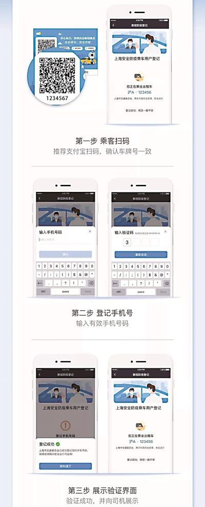 随着城市有序复工复产,上海也进一步出台了相关规定,旨在做好疫情防控工作,2月21日起,上海出租车乘客登记系统也已正式上线,在上海乘出租车可进行身份登记。 主动登记信息可以最大程度滴保障乘客的安全。此前,市交通委曾表示,上海在疫情期间将推出出租汽车乘客身份信息登记制度,引导乘客通过非接触式支付方式支付车费,为在第一时间追溯乘客乘坐城市客运交通工具信息、保障乘客安全提供支撑。近期,上海面临复工复产,乘客登记系统可在发生紧急情况时,迅速寻找到乘客,最大程度保障乘客安全。 具体操作流程如下:乘客乘坐出租车时,可打开支付宝、微信等具有扫码功能的任意软件进行扫码,确认乘坐车辆的车牌号后,输入乘客的手机号码即登记成功。需要注意的是,乘客填写的信息仅用于疫情排查。 (上海发布)