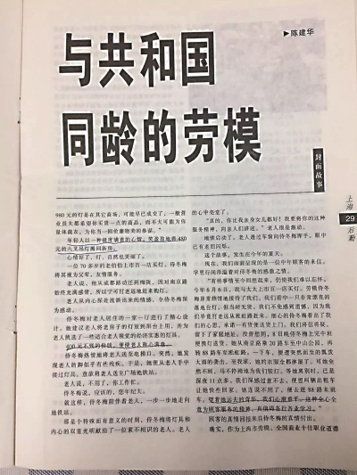 文 朱惠兴 春节前,经介绍我采访了劳模侍冬梅。侍冬梅是上海第一百货商店(以下简称“市百一店”)劳模马桂宁(1938.5—2017.11.6)的女徒弟。侍冬梅传承马派服务理念,把三尺灯具柜台,当作为人民服务的大舞台,通过卖灯,演绎出“送灯、寄灯、装灯、修灯、配灯”的动人故事…… 送灯 1992年元宵节,柜台前来了一位英姿飒爽的女军人。她对侍冬梅行了个军礼,说:“阿姨,你还认识我吗?10年前你送灯到我家。”侍冬梅看到她身后的一对夫妇,想起来了——那是1982年,他们来买过台灯,因为缺货而登记在册。他们是一对残疾人夫妇。后来台灯来了,侍冬梅亲自把灯送上门。 这一对夫妇感动地对侍冬梅说:“那年你送灯来后,女儿在明亮的灯光下做功课。我们告诉女儿,中百一店卖灯具的阿姨真好,你长大后一定要像阿姨那样,为人民服务、为社会服务。女儿很争气,考上了军校,今天穿上了军装,明天要离开上海了。我们要她来见你一面、向你告别。我们要女儿记住,你是一位好人。”当年你送来的那只台灯还在,我们看到它,就会想起你。望着他们幸福的一家人,侍冬梅流下了激动的泪水,心里觉得甘甜。 寄灯 沈阳某美院大辛(化名)老师出差到上海,在市百一店灯具柜台看中一盏曲臂工作台灯。但颜色不喜欢,因为是白色的,而他喜欢大红色。侍冬梅请他留下地址,等货到后再通知他。 两个月后货到了,侍冬梅为他垫资购买了这一盏大红色的曲臂工作台灯。大辛老师知道后很高兴,但因为不能到上海来取灯而踌躇。最后,侍冬梅想到了“寄灯”。 不过,当年可没有快递,而邮局的木箱子要么太大要么太小。侍冬梅就把台灯带回家里请老公帮忙,为这盏台灯“量身定制”了一只木箱子,把台灯寄到沈阳。大辛老师收到这只台灯后激动万分,写来了表扬信,信中写道:“没有想到,在小说、电影、电视里看到的事情,竟然成了事实……我曾用很多虚构的形象描绘了多少美丽的图画,今天,她用美的真实、美的心灵,谱写了美的乐章,描绘了美丽的人生画卷……感谢贵店领导培养了这样热情的服务人才,上海一百以及侍冬梅的名字,深深地印在我们东北顾客的心里。” 装灯 有一对老年夫妇乔迁莘庄新居,购买了一只吸顶灯,回家后装不上去。他们请求侍冬梅帮助。侍冬梅想到这一对老年夫妇跑那么远的路来找自己,说明老人对自己的信任。侍冬梅接受了老人的请求。 在此之前,侍冬梅也没有装过吸顶灯,因此下班后她先把这款型号的吸顶灯按照说明书摆弄了一下,随后赶到莘庄老人家里。 见侍冬梅来了,老人很高兴。这户人家没有扶梯,侍冬梅在桌子上面搁一只方凳子,人站在凳子上把吸顶灯装了上去。侍冬梅个子不高,而且是第一次这么“登高”,心里真的是“吓势势”,吓出了一身汗。一番忙碌之后,侍冬梅把吸顶灯装上去了,望着明亮的灯光,她抹去汗水,开心地笑了。 修灯 《文汇报》退休老记者大鸣(化名)先生的床头灯坏了,他想到了市百一店灯具柜台的劳模侍冬梅。侍冬梅得知这一信息后,答应在第二天下班后上门“修灯”。谁知第二天大雨倾盆。当老记者看到被大雨淋湿了衣服的侍冬梅出现在家门口时,激动万分。侍冬梅很快修好了床头灯。当大鸣先生要付修灯费用时,侍冬梅却连忙摆摆手说“不要了”。 大鸣先生后来作了一首“藏头诗”,请书法界朋友书写并裱好,送给侍冬梅表示感谢。诗曰:“侍君竞雄大世界,冬云飞雪催春来,梅开三九红万家,功名荣耀新时代。” 配灯 1993年9月,上海重型机器厂工人阿强(化名)家里一盏台灯的玻璃灯罩坏了。阿强跑了好多地方配不到玻璃灯罩。侍冬梅热情地接待了阿强,在缺货登记本上作了登记,叫他放心离去。 谁知这种玻璃灯罩市场上缺货已久,侍冬梅跑了许多地方也没有“淘”到这种灯罩,心里也很着急。 但是侍冬梅却一直记得这件事,时隔两年之后,1995年4月,当侍冬梅把“淘”到的玻璃灯罩送到阿强家里时,阿强激动得说不出话来,连声称谢。阿强写了一封表扬信给中百一店。信中说:“她真是讲信誉,这种信誉的价值是无比珍贵的,你们商店有了这种无比珍贵的信誉,何愁企业不发达?” 人物小传 侍冬梅1949年12月生于上海。就读于原卢湾区的打浦中学。1968年到崇明长征农场务农。1973年7月1日入党。1975年底,经上海商业一局安排进市百一店工作当营业员。2008年3月退休(含返聘)。 期间,侍冬梅连续五次被评为上海市劳动模范,被评为全国商业战线劳动模范,并获得全国五一劳动奖章等众多荣誉称号。《解放日报》1998年3月9日头版以《光明世界的光明使者》为题,报道了侍冬梅“卖灯”的故事。《劳动报》《新民晚报》《支部生活》等众多报刊,也报道了侍冬梅的先进事迹。 1970年代后期,侍冬梅嫁到长风地区泸定路长沈巷农家。1980年代后期,长沈巷房屋拆迁配房到怒江路长风四村。2000年初期,房屋置换到大渡河路建华大厦(隶属师大三村居委会)。这位马桂宁的女徒弟、沙叶新笔下的“光明使者”,真是我们长风地区的骄傲。 笔者后记 侍冬梅的动人故事还有许多。报刊上一篇篇的文章和一张张的图片新闻照片,表彰着她的先进事迹;群众的一封封表扬信和一面面锦旗,赞颂着她的奉献精神。 1988年,著名剧作家沙叶新(1939——2018)曾在一封表扬信中写道:“每当我在灯下写作,就会想起市百一店,想到那位营业员,她就是‘光明使者’。”