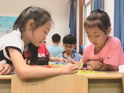 □记者 朱杰 为缓解全市小学生暑期“看护难”问题,引导和帮助小学生度过一个安全、快乐、有意义的假期,由团市委、市教委等多家单位联合推出的2019年小学生爱心暑托班,继续覆盖全市各区街(镇),同时也被列为2019年市政府实事项目。 7月8日,曹家渡街道爱心暑托班第一期如期开班。在暑托班期间,来自社区的90名学生将在这里结识新朋友,体验不同的有趣课程。 安全措施步步防垃圾分类进课堂 今年爱心暑托班第一期是从7月8日至7月31日,第二期是从8月1日至8月23日。和往年一样,今年的上课地点还是在武定西路上的社区学校。暑托班设3个班级,其中一年级单独一个班,二三年级一个班,四五年级一个班。每个班级招收30人,3个班级一共招生90人。根据报名情况来看,90人里有一半学生是连上两期。 尽管暑托班是早上8点才报到,但管理老师和学生志愿者提前1个小时就来到社区学校,做好迎接学生的准备工作。为了确保学生安全,避免交叉传染,爱心暑托班在学生进入教室前,也设置了两道关卡。大学生志愿者手拿体温测量仪,对每位学生进行体温测量,通过的学生将会由家长在学生登记簿上签字。经过上述两道程序后,学生才由志愿者领到相应的班级。 低年级的两个班在一楼,高年级的一个班在二楼,为了预防意外发生,教室门口、楼梯口、转弯处也都有志愿者维持秩序。生病请假的学生再到暑托班报到时,都需要出示医生开具的身体恢复证明,确保没有健康隐患。下午放学时,家长也不能直接进入教室,只能凭接送卡在门口登记后,再由志愿者将孩子领出教室。接送卡上有学生的基本信息和照片,家长每天接送孩子全凭接送卡。 在全市大力推行“垃圾分类”的当下,在暑托班开展垃圾分类自然也不能少。记者看到,在每间教室的入口处都配备了小四分类垃圾桶,走廊过道上还有大分类垃圾桶。据老师介绍,爱心暑托班的午餐是全区统一配送,每周的菜单都会向家长提前公布,学生吃剩下的饭菜也由配送公司进行回收。保洁员也会及时处理走道上的垃圾桶,保障教室周边无异味,降低蚊虫滋生的可能性。 课程设置丰富多彩延时照看负责到底 经了解,爱心暑托班每天有7节课,上午4节下午3节,每节课45分钟。在爱心暑托班,除了团区委和街道配送的课程外,还有一部分课程是由承办方自行设定的。在今年的课程里,每周两次的创意英语课是由外教老师担任,通过在课上做益智游戏,让学生在娱乐中有所学,锻炼英语口语表达能力。每周两次的动手课有剪纸、折纸、插花等非遗课程,让学生体验中国传统文化的魅力。 为了让孩子们做好垃圾分类,爱心暑托班开设了“身边的环保”这门课,邀请了专业老师教学生如何分辨生活中的垃圾,讲解垃圾分类对环境的益处,让学生从小培养环保意识。此外,爱心暑托班还开设有小学生礼貌礼仪、校园安全防范课程。 随着爱心暑托班的开展,也有更多的辖区共建单位参与进来。城管中队执法队员来到课堂上,为学生们讲解垃圾分类知识,如何正确处理生活中的常见垃圾,争做环保小卫士。来自辖区共建单位的银行工作人员,给学生们带来了理财课程,教他们如何管理零花钱,培育储蓄和理财意识。体能操和五子棋的课程,让学生做户外运动、锻炼大脑,学习娱乐两不误。 为了方便学生完成暑假作业,爱心暑托班还开设了“作业时间”课程。作业时间课程过后是作业答疑时间,由每班的班主任和学生志愿者负责,为孩子们进行作业上的辅导。当前爱心暑托班每个班级配备1名班主任、5名大学生志愿者和2名高中生志愿者。 大班里有一名四年级学生,这位女同学上课认真听讲,也乐于帮助其他同学,在家里还是一个“小当家”,买菜烧饭、洗衣拖地样样行。老师在和学生母亲交流时发现,家长还在孩子很小的时候,就十分重视家庭教育。承办方负责人谈到,可以探索家“班”互动,试验“家长课堂”,不仅是一次创新,也可以丰富课程内容。 为了安全考虑,针对下班晚的家长,爱心暑托班还提供延时照看服务。在规定接送时间段后,没有被家长接走的学生将集中在一楼的教室里,由老师和志愿者负责照看。