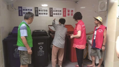 □记者 周晶 《上海市生活垃圾管理条例》自7月1日起实施,如今《条例》实行已“满月”。近期,记者获悉,正红里居民区的澳门新苑小区里有着一支勇战高温、不惧蚊虫叮咬的垃圾分类志愿者团队,成员共有13人,他们被居民们热情地称为守护“新时尚”的“十三罗汉”。 小区内废弃角落改造亮相成“十三罗汉”守卫阵地 澳门新苑小区位于澳门路88弄,落成于2000年前后,是一处商品房小区,小区由一栋高层和数栋小高层组成,目前共有132户居民入住。 说起以前扔垃圾的情况,作为澳门新苑居民一员的正红里居委会主任马金萍向记者介绍:“以前居民的习惯是到小区正中央的花坛边扔垃圾,好几个露天放置的垃圾桶敞开在小区的‘心脏位置’,不光气味难闻,而且还影响小区形象。” 今年入春后,长寿路街道开始在所有居民区全面推广垃圾分类定时定点投放,不过没有固定的垃圾厢房成了澳门新苑的一处“硬伤”。在征求居民同意之后,街道在小区深处的一处长期废弃角落划出一片区域,改造建成了标准化的垃圾厢房。在改造施工的同时,正红里居委会面向小区全体住户招募志愿者,“十三罗汉”也正是在这时“成军”。 垃圾厢房落成前,居委会干部与“十三罗汉”就率先忙碌起来,他们清理原本区域附近的堆积已久的杂物,让原本废弃尘封的角落焕然一新。“十三罗汉”成员徐大姐说:“居民跑过来扔垃圾,一看垃圾厢房旁边环境乱糟糟,积极性肯定会打折扣,现在全部弄清爽,光是看着就舒服!” 克服困难、研发“神器”守护“新时尚”,背后有故事 澳门新苑这支守护“新时尚”的“十三罗汉”志愿者团队,有着明确的工作制度,成员均按照居委会制定的排班表“上岗”。采访当天正值傍晚定时投放时段,“十三罗汉”中的3位成员——张先生、徐大姐和余大姐与记者谈起了他们与垃圾分类的那些事儿。 张先生是小区里的技术能手,平日里喜欢动手实践的他在担任垃圾分类志愿者后,看到不少居民碍于卫生问题,不愿进行是垃圾破袋,便燃起了研发“破袋神器”的兴趣。从第一代的木质“神器”到目前最新一代4.0版可折叠、可拆卸式的不锈钢“神器”,张先生不但在材质上考究,而且在实用性、可复制性上更是愿意下功夫。“神器”用刀片还是钉子、在垃圾桶上是否固定牢靠、制作成本、居民使用后的体验感都是他研究的重点。张先生告诉记者:“随着‘神器’的不断迭代更新,目前破袋只需短短数秒,居民们现在扔湿垃圾都不再犹豫了。” 个性爽朗的徐大姐平时和左邻右里关系都很好,她打趣地告诉记者:“刚开始做志愿者的那段时间,可是‘得罪’了不少老朋友。”碰到有分类不仔细、存在误投现象的邻居,徐大姐会立即给出改进意见,一点儿也不含糊,她经常和邻居们说:“垃圾分类是利国利民的好事,以后会一直做下去,如果现在睁一只眼闭一只眼忽悠过去,到时候就不是我来劝啦,钞票方面可是要吃苦头的。”在徐大姐的直言相劝下,邻居们不但没有与她产生嫌隙,反而都开始研究垃圾分类知识。 “除了要做家务,还要照顾幼小的外孙,退休后的生活没想到比原来上班还要忙,做了垃圾分类志愿者之后,我在家手脚都会再麻利一点,做公益的时间全靠挤出来。”余大姐说:“虽然一直围在垃圾桶边,又热又累,不过爱人与孩子都鼎力支持,他们都是我最大的后盾。”采访中,余大姐还拿出了手机向记者介绍她安装的好几款垃圾分类APP。“平时居民扔垃圾时难免碰到些吃不准的情况,要是这个垃圾我也不能完全有把握确定属于哪种类型,查一下手机立马显示,在我的建议下,很多居民都装上了软件,在家就能提升分类精准度。”