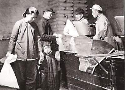 文 王美彪(曹杨一村) 米店就在兰溪路桥西北角,距离老虎灶大约200米。 米店的颜色是浅土黄的,与曹杨一村的民居一色,模样也相似,若袖珍版的,看着像不带花园紧靠路面的小别墅。不要以为说像别墅,就想象它多么讲究,其实它很质朴,只是不呆板。 曹杨新村的九个村都有米店,各自进货途径和时间不一,所以,为了吃到新米,居民有时候宁愿一家家米店地跑,比较了哪家的米最新、最饱满,才会下决心买。 有时家里的米告缺,就不得不临时去买米救急,但照样也要货比三家,实在要是米都不好,就少买些。 我们家遇到过这种情况,那次我刚好放学在家,外婆生怕人多,就让我跑在前头,先到米店去排队。到了米店,我看到没什么人,于是非常爽快地买了30斤米。 外婆到了以后,先是高兴,接着便打开米袋子,抄起一把米仔细看,嘴里念叨:米不好,太糙,该到别的米店看看再说,即使要买,也就最多先买个5斤。 年幼无知,做错了事,我有点懊恼。外婆看在眼里,到了家,冲着我道,过来,教你怎么看米好米坏。随即她从床底的米缸里抄起一小把先前买的剩米,又抄起一小把刚买回的米,说,好米白得很,米粒完整,一看就新,多大啊!不好的米,有点发黄,都是隔年的旧米,还碎,糙啊! 我自小大块头,上到小学三四年级,就替外婆去背米。米袋子一般都是麻布做的,很结实。外婆买米,基本都在30斤,米特好的时候,会买35斤,最多40斤,这是50多岁的外婆肩扛重量的极致,也是替外孙子着想,因为不是每次来了好米我都在,而且我块头再大,也终归是个孩子,力气有限。 有一次,米店进了上等好米,居民们纷纷出动排队购买。彼时我正上课,外婆就分两次买了50斤,来回排队来回扛。晚上,外婆说,手头紧,要不然会再买点,别人家真是好作兴,100地买。听了这话,我终于真的知道,我的父母挣的钱很少。 每回帮外婆扛米,我都是边陪着她排队,边打量米店的师傅干活。通常,米店里总有四五个师傅忙活。一位总坐在柜台前,接过顾客的钱和票证,在购粮证上做好登记,结帐。票证根据种类划分,有粮票、普通面粉票、富强粉票和筒子面票。筒子面很像纸包的挂面,但只有挂面的一半长,比挂面味道要好,价钱也在切面之上。其他几位师傅,有的在后面搬运、分类,有的给顾客装货。 我对装货特别好奇,因为下货的通道是长方形的洋铁皮组成的,顶端穿过天花板到楼上,下端弯曲着插入柜台,伸向顾客一个扁扁的大口,顾客抻开米袋套牢扁扁的大口,等着自己要的粮食。下货的通道上有个活动开关,专门控制下货。管控制的师傅先抬头,冲楼上喊一声顾客要的种类和份量,一会,楼上管装货的师傅也冲下面喊一声准备下货。只见控制开关一动,洋铁皮通道里就有了急促哗啦声响。下来的货直接进到一个安在磅秤上的漏斗里,份量合适与否,可用控制开关微调。管控制的师傅先在购粮证上划一道记号,看准顾客的口袋套牢,这才搬动控制开关,瞬间完成交易。顾客挪了米袋到一边,照例先要检验,然后才拿细细的麻绳扎紧袋口,拎了满心的欢喜出门去。 米店发生的,其实都蛮平常的,那是个不会有人去恶意捣乱的地方。人人都要过日子,砸别人家的口是要遭天谴的。活人都懂这个道理。所以,不管家徒四壁,还是鼎铛玉石,都惜米。