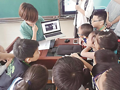 近日,上海市科技创新志愿服务联盟单位中国图书进出口上海公司(现代书店)的志愿者走进了曹杨爱心暑托班的课堂,为小朋友们打造亲子阅读阅享空间,特别邀请Lau rence King Pub lishing出版社的绘本老师讲述《A Cat's Gu ide to the Night Sky》(猫咪的夜空指南)一书,用精美的图片和精彩的绘本故事,打开孩童们的心中的宇宙大门,领略浩瀚星辰。