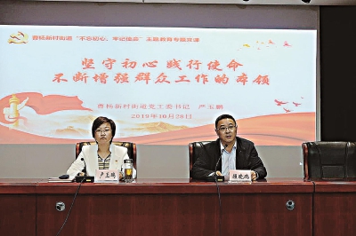 10月28日,曹杨新村街道举办“不忘初心、牢记使命”主题教育专题党课。街道党工委书记严玉鹏在学习调研基础上,结合前期开展调研情况和曹杨工作实际,围绕共产党人的初心和使命向在座党员干部分享了学习体会和感悟。街道党政领导班子、机关干部、居民区党组织负责人等参加了此次党课。区委主题教育第二指导组副组长王廉之出席。 党课包含以下几方面内容:一是不忘来时路,认识共产党人的初心和使命。通过主题教育期间密集的理论学习和调查研究,严玉鹏表示,个人对“初心和使命”有了更深刻的认识,认为“不忘初心、牢记使命”就是回答了“我是谁、为了谁、依靠谁”的问题。 二是对标找差距,坚守共产党人的初心和使命。基层党员干部在日常工作中或多或少都存在群众工作能力和本领的不足,存在没有解决好“我是谁、为了谁、依靠谁”的问题。主要体现在为民服务宗旨意识淡薄、深入群众调查研究不多、群众工作力量单一、宣传引导舆论把控被动、态度懒散作风漂浮粗枝大叶、基层党组织弱化、虚化、边缘化等方面。 三是树牢群众观,践行共产党人的初心和使命。作为基层党员干部,工作在群众中间,需要牢牢把握人民群众对美好生活的向往,把以人民为中心的发展思想贯彻落实到基层工作之中,做到发展为了人民、发展依靠人民、发展成果由人民共享。