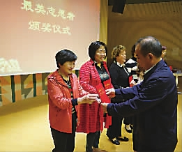 为大力弘扬“奉献、有爱、互助、进步”的志愿精神,激发“老伙伴”志愿者的服务热情,充分发挥先进模范作用,10月15日上午,曹杨新村街道在武宁片区举办了主题为“夕阳圆梦 暖心陪伴”的2020年曹杨新村街道最美“老伙伴”志愿者表彰大会,对曹杨社区为老志愿服务中涌现的最美志愿者们进行表彰,致敬长期活跃在社区的老年志愿者,共邀请35名社区里优秀的“老伙伴”志愿者参加。 本次大会以“夕阳圆梦”第七季宣传片《梦想照进家》为引,通过一个个助力老人“圆梦”、共享新时代人民城市建设成果的故事拉开帷幕。居委民政干部组成宣讲团,为参会人员饱含深情地讲述了本次获奖的最美志愿者代表的先进事迹。曹杨新村街道办事处副主任丁拥琪为六位最美志愿者颁发奖状,为八位离队优秀志愿者颁发纪念证书。 随后,最美“老伙伴”志愿者代表苏月卿发表了获奖感言,向大家分享了参加志愿服务活动的心得和经验。她表示,她将坚定地发扬志愿精神,热情服务居民群众,在做更多志愿服务的同时,做得更好,更扎实。 社区老年文艺团队还为大家带来了精彩绝伦的文艺节目:枫岭苑舞蹈队的舞蹈表演《生命的世界》舞姿优美动人,曹杨夕阳美健康队《八段锦》表演活力满格,枫岭园合唱团带来的小组合唱《天使的身影》将现场的气氛推向了顶点。这一系列活动将新时代曹杨社区老年群众多姿多彩的业余文化生活、积极向上的精神风貌和“晚晴”正能量展现得淋漓尽致,赢得现场的阵阵喝彩。 本次最美志愿者表彰活动在鼓励优秀老年志愿者的同时,旨在欢迎更多有志于曹杨老年志愿事业的伙伴参与到社区为老服务中来,发扬为老志愿服务精神,形成人人敬老、爱老、尊老的氛围,引领曹杨社区文明新风尚。