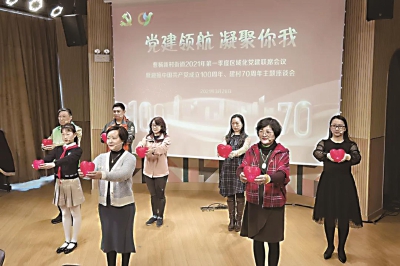 近日,曹杨新村街道武宁片区的二楼多功能厅召开了一场“别开生面”的会议——“党建领航 凝聚你我”曹杨新村街道2021年第一季度区域化党建联席会议暨迎接中国共产党成立100周年、建村70周年主题座谈会,“筑梦曹杨”区域化党建联盟单位一起共话“庆典”、共享“未来”,为曹杨“心心向杨”党建品牌注入“心”活力、聚力“心”格局、凝聚“心”能量。 聚焦“心心向杨”解难题为民生 会议现场,街道为区域化党建联盟单位解码了“心心向杨”党建品牌的内容,以此弥补了因疫情防控而未能参与发布会现场的遗憾。 大家从“心心向杨”品牌故事——“心连心,在一起”入手,不仅了解了“心心向杨”品牌背后的故事,还道出了“心心向杨”党建品牌的内涵和温度,即街道致力于将“心心向杨”党建品牌打造成为创新社会治理的金钥匙、创造美好生活的加油站、提升社区温度的连心桥、催人砥砺奋进的征程路,在新时代、新阶段联合区域化单位,引领曹杨人接续奋斗、砥砺前行、再创辉煌。 会上还对区域化党建联盟单位颁发了2020年度公益优秀集体,感谢过去一年,区域化单位“全情投入”、“精细服务”、“暖心公益”,共解社区难题,共创美好生活,让曹杨的“党建红”点亮“幸福家”。 2020年区域化党建联盟单位共参与社区志愿公益,开展联学、联建等活动40余场,服务居民群众3500余人次,同步打造的乐学、乐治、乐享三大板块10个联建共建项目均落地实施,进一步完善“家门口”党建服务地图。 深耕“党建行动”觅良方出实招 2021年,“心心向杨”党建品牌发布了“心”家园靓颜行动、“心”风尚传播行动、“心”力量加油行动、“心”感情升温行动等党建行动。 会上,区域化单位与社区现场“牵手”,签订了“心心向杨”党建行动项目书,也标志着“百家党建联盟行动”的正式启动。 区域化单位主动跨前,从基层党组织按需“点单”、区域化单位匹配“接单”,在“需求”清单的摸索中,探寻党建行动落地的“可行性”,实现“携手同行、共享融合”的新局面。 上海共联通信信息发展有限公司纪委书记、工会主席左彦欣与源园居民区党总支书记施云霞进行“心”家园靓颜行动——“签”手美好党建行动项目签约;曹杨新村街道党工委副书记王海峰与上海市曹杨第二中学党委书记侯文英进行“签”手“心”风尚传播行动——益起说曹young党建行动项目签约;曹杨物业、长风物业联合党支部副书记、工会主席张俊与花溪园居民区党总支书记陈健携手开展“心”力量加油行动——同心楼组签订党建行动项目;普陀区中心医院组织科科长李静与曹杨新村街道社区党群服务中心负责人刘瑶共同签订“心”感情升温行动——“医”齐“杨”帆党建行动项目。 筑牢“红色堡垒”聚“智”力话未来 在迎接中国共产党成立100周年、建村70周年主题座谈会上,街道和区域化单位都“各抒己见、各展所能、各扬所长”,聚焦中国共产党成立100周年、曹杨新村街道建村70周年,精准献计出力、同心同向发力,共绘美好曹杨新画卷。 最后,曹杨新村街道党工委副书记王海峰从依托区域化红色联盟,互联共通;整合区域内外资源,共创“嘉”园;做深党建项目品牌,服务为民三个方面与区域化单位进行了讨论探索。 2021年,对于曹杨而言注定是意义非凡的一年。建党100周年、建村70周年,街道全体上下用“心心向杨”党建品牌来凝聚你我,用“心连心,在一起”的党建行动来践行初心。