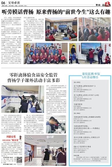 零距离体验食品安全监管 曹杨学子课外活动丰富多彩