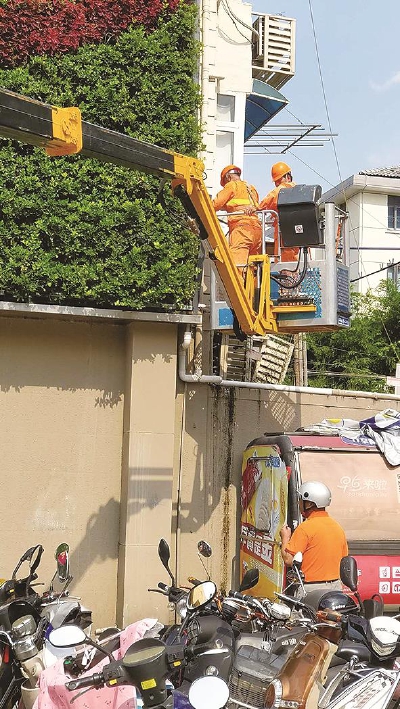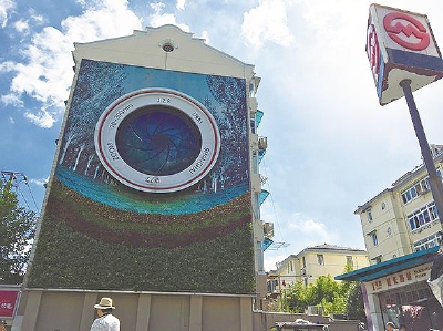 记者 侯传婷 在共和新路延长路路口一座居民楼的墙上,一个巨大的相机镜头装置格外抢眼。然而这面“美貌”的墙,最近却成了周边居民的一大困扰。 8月29日下班晚高峰期,市民龙先生向记者反映,1号线延长路地铁站2号口出来,镜头墙面上渗水,流向路面,行人经过都要绕行。另外,由于水势大,积水甚至流向了一侧的超市门口。 8月30日一早,记者到现场查看时,修理组刚刚修好,正在收尾。据绿金绿化工作人员介绍,“当天早上6点多看到这里漏水,就向公司报修了,现在已经修好了。”这面镜头墙采用了自动定时浇水装置,一天定时3次浇水,有时候会遇到这种情况,一般每月工人会定期来维修2次。 超市店长付女士告诉记者,“这面镜头墙每天都会浇水至少2次,水流到地面上,顾客会踩到水,加之地面滑,一不小心可能会滑倒,有一定的安全隐患。冬天水流到地面,就很难干,这边人流量大,如果结冰,就更加危险了。” 住在旁边小区的居民孙阿姨说,“这里漏水一年多了,时间长了下面都有青苔了,走路不方便,特别是老年人,一不小心可能会滑倒,我们也不知道去哪里反映这个问题。其实,边上可以用管子把水引到一边去,不能让水流到路面上来。” 市容管理工作人员宋先生说:“有时漏水严重的时候,水会流到盲道的位置,我会放两辆自行车挡在那里,防止行人摔倒。镜头墙每天上午9点、下午3点各浇1次,每次持续6分钟。” 上午9点,镜头墙再次浇水,记者发现仍有2处在往下流水,其中靠近便利店的一侧顺着镜头墙左侧边沿,直接倾洒到地面,浇水大概持续了6分钟。根据市民提供的视频,漏水量确实比前一天傍晚少了很多。 8月30日下午,记者致电静安区绿化管理中心,反映此情况。8月31日上午,静安区绿化管理中心回复,表示已派维修师傅,整修了镜头墙漏水问题。之后,如果再遇漏水情况,欢迎广大居民及时反映。