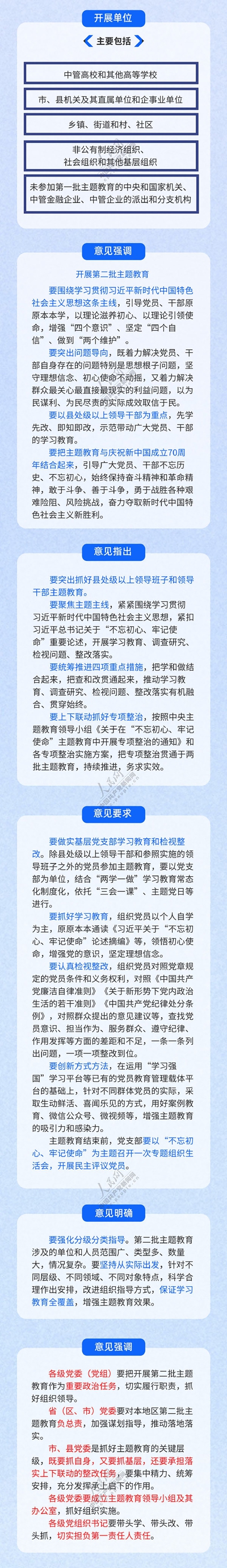 近日,中央“不忘初心、牢记使命”主题教育领导小印发《关于“不忘初心、牢记使命”主题教育的指导意见》,第二批主题教育该如何开展?人民网·中国共产党新闻网带您一图读懂。