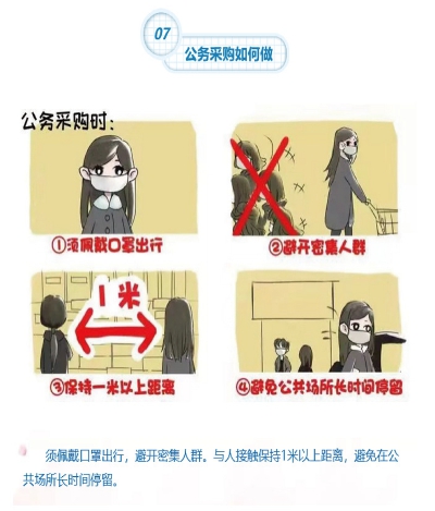 公务采购如何做? 佩戴口罩出行,避开密集人群。与人接触保持1米以上距离,避免在公共场所长时间停留。 |