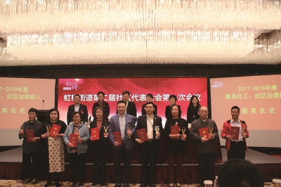 □见习记者 何玉卿 摄影报道 近日,虹桥街道第二届社区代表大会第一次会议顺利召开。来自街道办事处、行政组织党组成员单位、居民区、驻区单位的120余名正式代表和18名列席代表、12名特邀代表以饱满的热情,积极建言献策、履行代表职责,共商街道发展大计,共谋“争创特长、凝心聚力,共建共享虹桥美好生活”良策。长宁区委副书记陈华文、区民政局局长章维、区地区办主任傅蕾,以及虹桥街道全体党政班子成员出席会议。 回顾服务民生表彰最美民星 会议首先回顾了虹桥街道2018年在服务民生方面的创新探索。虹SPACE·党建之家暨企业服务中心通过打造easy服务社邻家、区域党建引力场、共益社区治理芯,把虹SPACE打造成为企业白领的美好家园;2018年是古北市民中心新址启用5周年,中心对4大功能和9个空间进行了提升,打造古北市民中心2.0版;虹桥街道社区综合为老服务中心目前已实现社区托养、医养结合、家庭支持、生活服务等“一站式”综合为老服务,具有“功能集约化、运营社会化、服务专业化、管理智能化”四大特色。 去年的社区代表大会上,街道发布了2017-2018年度“最美社工”、“社区治理能人”评选活动。一年来,历经发动部署、宣传动员、推荐审核、投票评选等环节,最终产生了虹桥街道10名“最美社工”和10名“社区治理能人”。大会现场,除了对这些身边的最美民星进行颁奖,还对在街道“三个公共”做出巨大贡献的“美丽家园共治项目”进行了表彰。分别是公共管理方面的垃圾分类新时尚地标、达人;公共平安方面的平安建设新先锋;公共服务方面的“融之情”社区文化项目。 习近平总书记强调:要坚决打赢脱贫攻坚战。根据区委、区政府的部署,虹桥街道党工委、办事处积极行动,并得到了社区居民、社会组织、社区单位的大力支持,共同助力精准扶贫、践行责任担当。在此过程中,涌现出了一批优秀的社区企业和单位,也在现场被授予“最美社区单位”。 明确目标任务代表履职换届 会上,虹桥街道党工委副书记、办事处主任高峥发布《2019年度虹桥街道办事处目标任务》。2019年是新中国成立70周年,是全面建成小康社会的关键一年。虹桥街道将坚持以习近平新时代中国特色社会主义思想为指导,在区委、区政府的坚强领导下,按照全面从严治党和高质量发展、高品质生活、高水平改革创新的要求,以服务经济发展、城区精细管理、社区公共服务、党建引领治理为重点内容,努力打造四个方面和十个特长项,不断推进“国际精品社区、活力三情家园”建设,以优异成绩庆祝中华人民共和国成立70周年。 此外,社区管理办、区城管执法大队虹桥中队、区公安分局虹桥路派出所、社区发展办也在会上进行了交流发言;虹桥社区基金会的发起单位之一奇瑞捷豹路虎汽车有限公司的代表戴靖发布社区基金会倡议;上海社邻家联合创始人章雯吉现场发布了社区基金会首个项目——社区规划师项目;街道党工委副书记郭凯就“记·忆虹桥”展览的相关情况进行了介绍,并就今年的系列活动进行倡议。 最后,按照社区代表会议相关规定,会议选举产生了虹桥街道第二届社区委员会成员。新当选的社区委员会委员召开第二届社区委员会第一次会议,审议并通过《第二届社区委员会主任、副主任、秘书长名单》、《第二届社区专业委员会组成人员名单》。 代表们表示,将不辱使命,接好接力棒,为虹桥街道各项经济社会事业发展建言献策、贡献力量。