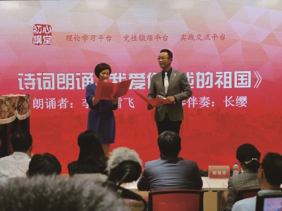 近日,学“习”路上的朗读者——“初心讲堂”第二讲暨“初心读书会”启动仪式在虹桥街道虹SPACE·党建之家精彩展现。 此次活动由中共长宁区委组织部主办,虹桥街道党工委和驻区单位阿基米德传媒、上海人民广播电台经典947联合承办,并得到了虹桥时尚创意产业联盟党委的大力支持。上海市党建服务中心、阿基米德(上海)传媒有限公司、长宁区委组织部和虹桥街道相关负责同志出席活动,来自上海油画雕塑院、虹桥宾馆等驻区单位、“两新”组织的100余名党员们现场参与。 同时,活动在阿基米德“学习同心圆”板块全程直播,全区近200个各领域基层党组织线上观摩、共同参与。 活动现场发布了长宁区“初心读书会”项目。“初心读书会”是长宁区区域化党建工作联席会议推出的区域化党建工作品牌,从思想性、可读性、共鸣性等方面向党员定期推荐书单,开展“学习新思想、共读一本书”现场活动,每期由一名专家导读,再结合红色诵读、知识竞赛、现场问答等多种形式,进一步增强理论学习的吸引力和感染力。 经典947的主持人雪飞、李欣通过诗歌朗诵《我爱你,我的祖国》,表达了对祖国的热爱之情,点燃了现场的氛围。市委党校哲学教研部副教授、上海青年讲师团专家团成员朱叶楠老师,则与大家分享解读了《习近平用典》中的选段。 活动中,全场党员用真挚饱满的情感,齐声诵读了《我爱你,我的祖国》诗歌选段。在座的党员们饱含激情、心潮澎湃,对祖国的无比热爱之情通过诗歌朗诵的形式淋漓尽致地表达。参加活动的“两新”组织党员和驻区单位党员纷纷表达“此次活动融艺术感染和党性教育于一体,形式新颖、直抵人心,自己对初心使命的认识更加清晰坚定了”。