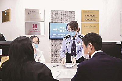 通过这个窗口,符合A类工作许可申请条件的外国人,均可在窗口同步提交工作许可和居留许可申请,办理时间由原来的17个工作日缩短至7个工作日,并由区科委(区外国专家局)和区出入境并联审批,一并将两证快递到家。