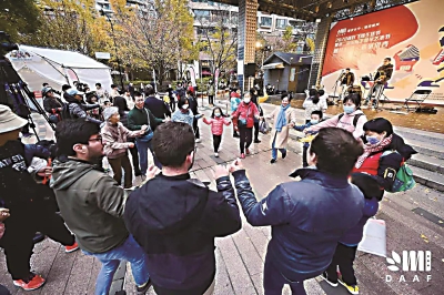 11月28日,虹桥街道携手长宁区文旅局,上海音乐家协会手风琴专业委员会和上海长宁新虹桥文化艺术交流中心等多家单位,共同打造黄金城道海派文化时尚艺术街区舞台,以“融情虹桥·遇见银杏”为主题,为社区中外居民带来了一场融合了秋叶飞扬生活节和国际手风琴艺术节的艺术盛会。 来自上海手风琴联盟乐团的小演奏家们,用手风琴演奏了一首首迎接风声的经典曲目,吸引了众多居民欣赏。由平均年龄12岁的青少年组成的Muzika Ensemble室内乐团,是一支年轻而富有活力的乐团,他们用手风琴、钢琴、小提琴和长笛为现场居民们演奏了苏格兰和爱尔兰民间音乐。在四位吟游诗人般演奏家的演奏下,多国文化相融交汇在一起,跨越国际的界限,各国各民族的大家,围聚在一起载歌载舞。 现场还以开放式帐篷的形式展出了世界各国的精美手风琴,以及举办了艺术手作体验,让大家领略艺术的魅力。