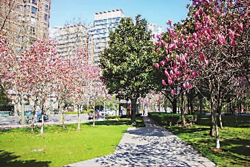 春色,是一抹风的柔软。值此人间四月天,虹桥的街头巷尾,像是约定好了似的,飘洒春意,都在着力描绘着入画的景致。春日的阳光洒在花枝上,染开一片桃色的光晕,这便是虹桥“春日限定”的温柔。
