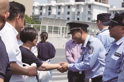 7月30日,由闵行区委统战部副部长、区社会主义学院院长巫岭带队,民建闵行区委主委、区科协主席宋运堂,上海罗森便利有限公司总经理张晟,上海延中饮料有限公司董事长章凌锋一行,前来虹桥慰问虹桥镇一线值勤交巡警、环卫工人,送上防暑降温用品,为高温超人降降温。虹桥镇党委副书记马绘新,镇党委委员刘芬,副镇长杨春华,虹桥龙柏派出所教导员韩伟华,镇环卫公司支部书记、经理褚剑东陪同。 在慰问活动前举行的交流座谈会上,巫岭向两家提供爱心用品的企业表达了感谢,向炎炎夏日里最可爱的一线值勤交巡警、环卫工人表达了敬意。 此次活动由区委统战部牵线搭桥而促成,马绘新在会上向区委统战部、民建区委及来自虹桥的民建会员企业表达了感谢,他指出持续的高温天气“烤”验着城市管理,正是因为有一线值勤交巡警、环卫工人的努力,城市才能顺畅运行。同时他表示,虹桥镇将持续优化营商环境,为在虹桥的企业提供优质服务。