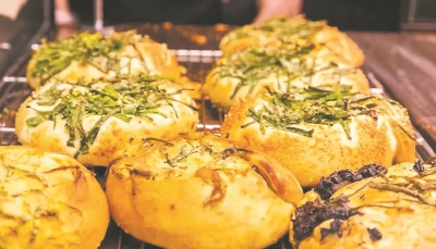 记者 陆骏健 工作日的下午,你是否在成堆的任务面前打不起精神?需要来点东西提提神?如果飘来一阵葱香,是否会让你精神一振?最近,就有一股葱香飘到了中山公园。 记者实探“网红美食” 前年,一块小小的葱油饼红遍了上海滩,也让阿大成了家喻户晓的人物,一时间葱油饼这一经典小吃又重新让世人关注。最近,阿大竟然来到了中山公园,但卖的不再是葱油饼,而是葱油包。这一下,钟情于这口葱油美妙滋味的记者按耐不住了,赶紧去一探究竟。 在龙之梦购物公园1楼的乐乐茶,记者见到了传说中的阿大葱油包。原来,这是乐乐茶与阿大师傅合作,使用他多年来的配方,推出了新品——阿大葱油软包。目前,阿大葱油软包共有三种口味:经典、松露野菌、蟹粉。葱油软包一天出锅两次中午12点和下午5点半,售完即止。 葱油包能否超越原作? 经过长时间的排队,记者付费19元,终于抢购到了仅剩的一只蟹粉味的葱油软包。从外观观察,葱油软包的用料十分厚实,肉眼可见的葱非常多,面包表面还铺着一层金黄色的咸蛋黄。但记者发现葱香味并不如“原版”葱油饼刚出锅时那样袭人。 那么味道如何呢?记者首先撕了一块,发现面包十分有劲道,甚至有点太有韧性了,一下子撕下了一大块。好在味道着实不错,虽然韧性强但不影响面包口感,面包内陷中的蟹肉肉眼可见,但蟹粉味记者却着实没有品尝出来。不过总体来说面包品质还是有保障的。