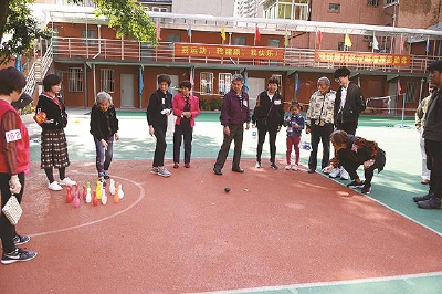 记者 吴佳逸 整理报道 10月27日上午,海园居民区党总支、居委会在上海逸夫职业技术学校,开展了以“邻里一家亲,运动乐翻天”为主题的海园居民区第四届社区家庭趣味运动会。街道党建办主任杨霄悦、街道管理办主任刘大路出席运动会开幕式,并为海园居民区进口博览会志愿者代表发放志愿者服装。海园居民区党总支及相关同志组织并主持活动。本次运动会吸引了180名居民参与。 在报名阶段,记者注意到,运动会以“邻里一家亲”为主题,鼓励居民和邻居或家人组队,三人为一队就可以报名。报名情况显示邻居组队比较多。 运动会在雄伟的国歌声中拉开了帷幕。借助开幕式的机会,街道两位领导给海园居民区的进博会志愿者发放志愿者服、志愿帽以及志愿袖章,志愿者们在志愿者代表徐兴泰的带领下,一起宣誓。 在“我运动,我健康,我快乐”嘹亮的口号声中,运动会正式开始。参加比赛的居民们先在逸夫职校体育老师的带领下,一起做广播体操,进行热身运动。据海园居民区党总支书记张红芬向记者介绍,海园居民区积极动员社区单位参与共建社区活动,充分发挥了共建单位的资源优势,本次运动会得到了同心家园共建理事会海园分会共建单位——上海市逸夫职业技术学校的鼎力相助。运动会在逸夫职校举行,不仅是借用场地而已,也受到了学校的大力支持。校方会提供运动器具,派学生担任志愿者,还有体育老师亲自领操。记者看到,居民们在老师的带领下,一起做起了广播操,场面十分壮观,“我原以为大家都把广播操忘得差不多了,没想到都做得像模像样呢!”张书记笑道。 随后,参加比赛的居民们被分成了五个组别,分别是拍皮球、打保龄球、投飞镖、射箭和投篮。大家井然有序,你方比完我登场。一旁海园摄影队的摄影爱好者们也咔嚓咔嚓按动着快门,记录下这些快乐的瞬间。值得一提的是,这些摄影爱好者也是小区居民,平时,海园摄影队也会邀请辖区内的上海市摄影家协会进行专业指导。(图片由海园摄影队提供)