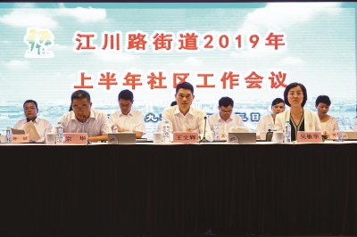 7月23日,江川路街道2019上半年社区工作会议在文馨剧场召开,会议由街道党工委副书记宗华主持。 会议伊始,街道党工委副书记、办事处主任吴敏华作工作报告,总结街道2019年上半年工作、部署2019年下半年工作任务。 全体参会人员分成六组,结合社区工作报告,回顾2019年上半年工作,谋划下半年工作,进行交流讨论,为宜居江川的发展献计献策。 会上,街道党工委书记王文辉传达六届区委八次全会精神并发表讲话,并提出三点要求:首先是同心同力,勇担作为,回顾上半年,江川路街道发扬了“盯”的精神、“闯”的干劲、“实”的作风,工作有新亮点、新突破、新成效。第二,要提高站位、坚定信心,勇当主力军中的先锋队,在闵行勇当服务上海发展大局主力军的目标中,江川必须成为主力军中的先锋队。第三,初心如磐、使命在肩,奋力创造江川发展新传奇。今年街道的工作主线是“补短板、强设施、惠民生”,无论情况如何变化,都不能改变目标,始终充满奋斗激情。接下来,江川路街道将紧盯城市更新和旧改不放松,提升城市形象;统筹推进创全和城市管理,完成全国文明城区、市生活垃圾分类示范街道、市“无违建”街镇三个创建任务;扎实开展“不忘初心,牢记使命”主题教育,用民生福祉的改善来回答“时代之问”、“初心四问”。 总结经验,指出问题,明确方向,下半年江川将按照区委的工作部署和要求,不忘初心,牢记使命,开拓进取,奋力创造新时代江川发展的新传奇 以优异成绩迎接中华人民共和国成立70周年! 江川路街道2019年社区工作报告 详情见02、03版