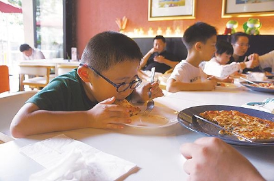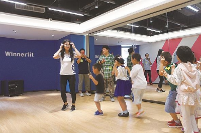 在四楼宽敞明亮的W innerfit健身馆里,小朋友开心地随着指导老师做着各种趣味瑜伽游戏,蹦蹦跳跳;在一楼傲思国际教育设计新颖的教室里,小朋友认真地在洁白的灯笼纸面上绘制下自己色彩斑斓的想象,跟着老师学习趣味英语;在非常ins风的W ing s酒吧,6组幸运儿有模有样地做着披萨,最后开心地和爸爸妈妈分享自己的劳动成果。