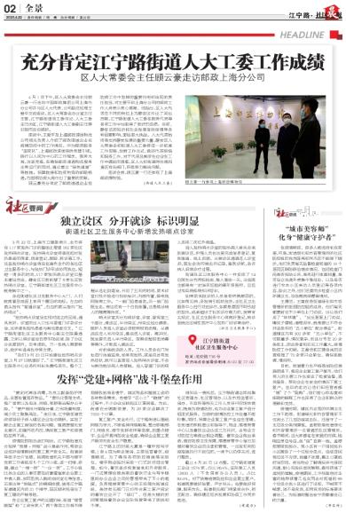 充分肯定江宁路街道人大工委工作成绩