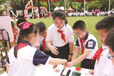 儿童是祖国的希望,更是祖国的未来。为在幼小的心灵种下爱党爱国的种子,让红色基因伴随孩子们成长的脚步,薪火相传,建党百年之际,嘉兴路街道携手辖区学校开展丰富多彩的庆祝活动,让孩子度过一个愉快又有意义的节日! 舟山路幼儿园开展“娃娃学四史”活动。根据幼儿年龄特点,融合园内课程和周边资源,组织孩子们参观国歌展示馆、开展“国歌知多少”知识竞赛、体验升旗手和护旗手的职责,增进对国旗、国歌的了解,从小培养孩子的家国情怀,铭记历史、学会感恩。 华东师大一附中实验小学开展“童心向党,争做新时代好少年”首届艺术节闭幕式暨庆“六一”汇演活动。舞蹈《永远跟党走》、情景剧《穿越封锁线》、歌舞《东方红》、诗歌朗诵《党旗飘扬》……活动现场,围绕庆祝中国共产党成立100周年开展的绘画、书法创作比赛,让孩子们用实际行动为党的生日献上最诚挚的祝福,展现了少先队员们高举队旗跟党走的决心。 张桥路小学举行了“童心向党,爱满校园”庆祝建党100周年暨“六一”主题活动。队员们通过中国鼓、朗诵、舞蹈、三句半、合唱等多种表现形式,歌颂中国共产党为民族独立、国家复兴和人民幸福而不断奋斗的光辉历程,以实际行动献礼建党百年,争做时代新人。 虹口区第二中心小学的红领巾篆刻社团的队员们带着自己围绕“中共四大”设计篆刻的印章,参加了上海“百年百章——红领巾学党史”红色游园会。少先队员们承办“方寸间的红色‘印’记”展台,围绕庆祝中国共产党成立100周年,以“党的光辉”“志愿军”“脱贫攻坚”“童心向党”“继往开来”“长征”等篆刻内容,引导现场的小伙伴们感受中国传统文化之匠心,从而激发爱党爱国的热情,努力成长为能够担当民族复兴大任的时代新人! (街道妇联)