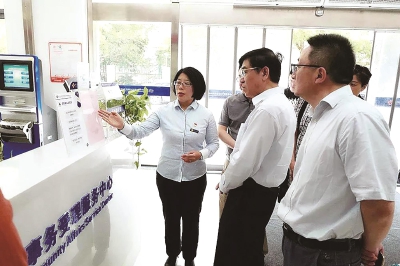 受理中心工作人员详细汇报了“一网通办”、“全市通办”的受理业务量、双休日业务的办理情况以及养老顾问等重点业务的推进情况。
