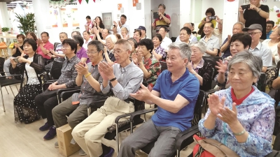 梅雨的季节,从第三市民驿站内传出一阵阵激昂的歌声,这是文苑二居民区党总支正在进行的“颂歌献给党”庆祝建党98周年暨2018-2019年度先进党员表彰会。 活动在庄严的国歌声中开始,之后,在党总支委员吴新明带领下共同重温了入党誓词。由居民区党总支书记张文娟宣读了表彰文苑二居民区先进党员的决定,鼓励受到表彰的党员珍惜荣誉、戒骄戒躁、再接再厉,继续保持先进性;勉励在座的党员,学习先进,以身作则、严于律己、公道正派;要在居民区中形成学习先进、赶超先进、争当先进的良好氛围,充分发挥共产党员的先锋模范作用。 接下来,拂晓剧团为大家带来了精彩的歌曲演唱,《新四军军歌》、《毛委员和我们在一起》、《今天是你的生日》、《珊瑚颂》、《绣红旗》、《游击队之歌》、《我和我的祖国》,一首首脍炙人口的老歌引发了党员们的无尽回忆,很多党员跟着演员们一起吟唱,每每一曲结束,大家都报以热烈的掌声和大场的叫好声。 最后一曲唱罢,观众们意犹未尽。于是剧团又额外加唱了《我们共产党人好比种子》,台上台下,热烈互动,现场气氛非常热烈。 演出结束,观众们纷纷表示一个小时的节目时间太短,认为这是近年来看到的最好的一次演出,虽然都是演唱,但是一点没有枯燥的感觉,剧团的演员均年龄超过65岁,还有80高龄的老人,但是演出质量给非常高,大家都非常喜欢。