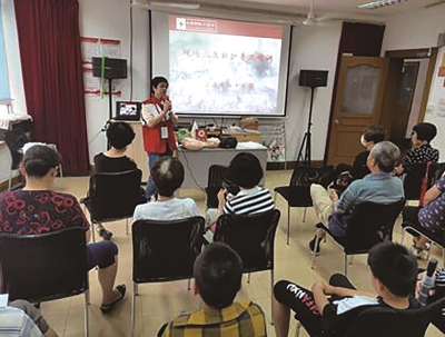 随着小区老龄化程度越来越高,为进一步提高居民健康安全及遇到突发事件时的应变能力,掌握正确处置方法,凉六党总支日前邀请红十字会的曹老师为小内居民进行心肺复苏知识的讲座及演练,吸引了诸多居民携老扶幼前来。 曹老师首先为大家介绍了红十字会的起源与理念,让大家了解红十字会精神“人道、博爱、奉献”。曹老师指出,心搏骤停的原因可分为心源性心搏骤停和非心源性心搏骤停。随后讲解了初步急救的方法: 1.评估和现场安全,急救者在确认现场安全的情况下轻拍患者的肩膀,并大声呼喊“你还好吗?”并检查患者是否有呼吸。 2.启动紧急医疗服务并获取AED:急救者应启动EM S体系(拨打120),取来AED(如果有条件),对患者实施CPR,如需要时立即进行除颤。 3.心腹复苏具体操作:胸外按压-打开气道-人工呼吸,不断重复等待救护车的到来。 4.实物演练:大家对实验器械进行实践演练,曹老师不断对大家操作中的错误予以纠正。 活动结束后,居民们纷纷表示收获颇多,明白了什么是急救黄金时间,急救时需要注意什么,碰到类似情况该如何应对。