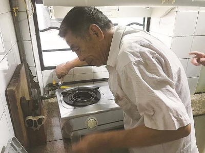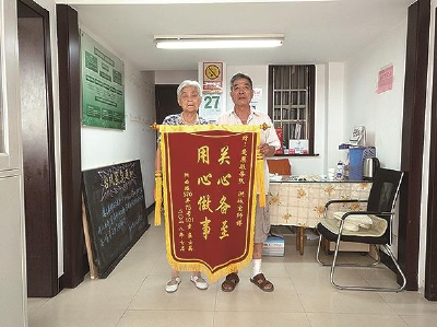 通讯员 毛义明 近日,阳曲路570弄独居老人崔士英阿姨为何一定要送一面“关心备至,用心做事”的锦旗给“老伙伴”项目志愿者洪林宝呢? 崔士英阿姨现年86岁,双眼患有白内障,视力模糊。有3个子女,分别居住在浦东、虹口等地,工作较忙。崔阿姨有个习惯,不喜欢把自己的难处等事宜告诉子女,以报平安为主。自7月以来,崔阿姨家里总是弥漫着一股天然气异味,而且越来越重,烧锅做饭就有所消失,她曾请马路游击队师傅看过也未能找到原因。 怎么办?崔阿姨于是找到居委会“老伙伴”项目志愿者洪林宝师傅。洪师傅虽不是直接结对她,但听说她也是独居老人并遇上了难处,拿上工具箱,便来到她家仔细查找。 7月26日,天气炎热,洪师傅在做好自身防护之后,用打火机一打,“啪”的一声,嵌入式灶头进气管与天然气接头的地方金属软管处火苗蹿了出来。 原因找到了,是该处的螺丝因天长日久自然松动。于是对症下药,洪师傅用扳头将螺丝拧紧。再将天然气总阀打开,用鼻子嗅了又嗅,没闻到丝毫天然气异味方对崔阿姨说道:“可以放心大胆使用了”。 没花一分钱解除了家里的天然气泄漏问题,化险为夷,怎不令崔士英阿姨激动万分。修好后,崔阿姨执意要付给洪师傅辛苦费被洪师傅婉言谢绝。给钱不收,那就买条200多元的烟给洪师傅抽抽。洪师傅还是坚决不收。那怎么办?崔阿姨的谢意无法表达。在他人提醒下,崔阿姨决定做一面锦旗送至居委会转交洪林宝。于是,出现了本文开头的一幕。 据崔阿姨说:“洪林宝师傅人真好,是活雷锋,做事认真,三年前也曾帮我修过吊扇,而且修得很好,也没要过我一分钱,电扇用到现在也没坏过。谢谢洪师傅!”。