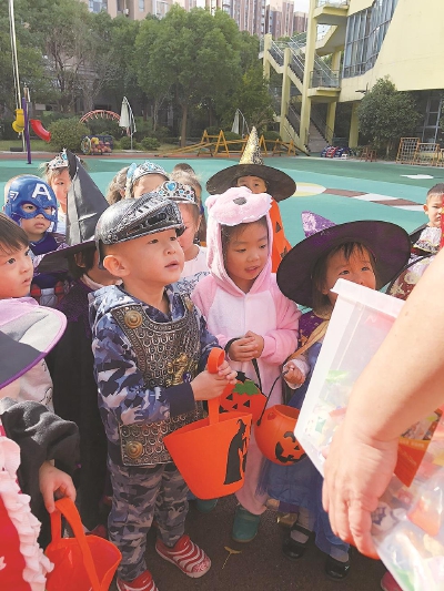 日前,菊园幼儿园、东昌幼儿园分别开展了“万圣节主题”活动,在活动中,孩子们穿上了精心准备的服装,带上了“讨糖”的装备,以年级组和班级为单位开展了丰富多彩的活动。