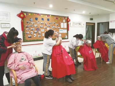 日前,崂山二村敬老院会议室出现了感人的一幕,头发花白的老人们一字排开,安静地坐在椅子或轮椅上,脖子上围着防护衣。一群十七、八岁的青少年们正忙着给这些爷爷奶奶甚至是太爷爷、太奶奶们专心理发。 原来这是街道妇联联系上海市第二轻工业学校美容美发专业毕业班的同学们来为敬老院的老人们做志愿服务活动。同学们临近毕业,正忙于实习、找工作,但在听到街道妇联的提议后马上愉快地答应了。7号中午,11位同学匆忙吃过中饭,在班长李文晴的带领下冒雨赶到街道崂山二村敬老院。在了解了老人的健康状况后,同学们迅速分成两组:一组同学在二楼会议室为能够起床行走或坐轮椅的老人理发;另一组随工作人员上楼为卧床老人服务。 只见同学们首先替老人们围好防护衣,然后打开工具箱取出理发工具,耐心细致地为老人们开始理发。一旁的工作人员对正在理发的同学说:“给她剪得短点儿,老人家平时不肯理发,今天你们来,她才肯的。”同学们一边剪,一边征询老人们的意见:“阿婆,前面少剪点,好吗?”、“大爷,后面打薄点,好吗?”三个多小时的时间里,同学们像勤劳的小蜜蜂,一刻不停歇,总共为35位敬老院的老人理了发。 时间倏忽而过,敬老院的老人们和孩子们度过了愉快的一天。下午三点半,同学们结束了当天的志愿服务活动,大家收拾工具并坚持要打扫会议室。都说现在的“00后”是温室里的花朵,但是走出家门,他们个个勤劳肯干、乐于奉献,是社会主义的好接班人。 (党建办)