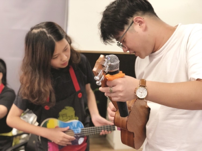 为了提升楼宇白领在社区中的凝聚力和归属感,促进社区融合,营造“友爱、互助、共享、共建”的共融社区文教一体化氛围,8月3日下午,陆家嘴街道楼宇课堂通过线下和线上(活力102APP)的报名方式,在活力102开展了一场“巧制尤克里里 品味匠心精神”音乐课活动,现场40多位楼宇白领共同感受了音乐带给大家的无穷乐趣。 课间,在老师的悉心指导下,大家迫不及待地制作着属于自己的夏威夷小吉他,做琴架、上琴桥、上弦调音……大家从繁忙的城市生活和工作中抽身出来沉醉于艺术中,现场你都能感受到空气中弥漫的颜料香气。三个小时之后,大家克服种种制作中的难题,终于制作完成,每一把尤克里里都个性十足,或色调清丽、或霸气外漏,或不拘一格。 最后在大家都完成了自己的作品之后,尤克里里老师教授大家尤克里里的基础知识和弹奏技巧,帮助大家快速入门,为后期自学打好基础。 (社区学校)
