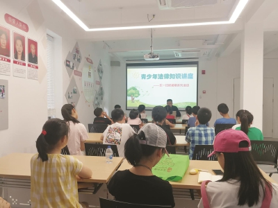 8月5日上午,为使暑期中的中小学生们知法懂法,增强个人安全防范意识,东一社区邀请了申通律师事务所的裴永喜律师在居委活动室开展了青少年普法以及禁毒教育的知识讲座。 讲座中东一居委社工为在场的中小学生们讲述了毒品的危害性,以及新一代毒品的特征;在接下去的普法讲座中,裴律师紧紧围绕青少年应如何知法,懂法,守法,并运用了大量的实际案列进行了生动有趣的讲解,告知在场的学生们在遇到危急的情况下,应采取何种方式保护自己。最后,在互动环节当中,学生们踊跃发言提问,现场氛围活跃。 这次青少年普法活动增强了学生们的自我保护意识及能力,对防止青少年违法犯罪等方面具有深刻的意义。 (东一居委)