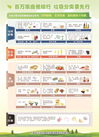 《上海市生活垃圾管理条例》近日正式公布,将于2019年7月1日起施行。垃圾究竟如何分类?餐厅、旅馆还能使用一次性用品吗?不按照规定分类是否有处罚?还有什么和我们生活息息相关的新规定?一起来看 问:为什么要对生活垃圾进行分类管理? 答:条例第三条规定,本市将建立健全生活垃圾分类投放、分类收集、分类运输、分类处置的全程分类体系,积极推进生活垃圾源头减量和资源循环利用。 按照国务院在部分城市先行开展生活垃圾强制分类的要求,本市将于2020年底前实现生活垃圾强制分类管理。通过生活垃圾分类管理,可以提高生活垃圾回收和资源化利用效率,从而减少生活垃圾焚烧、填埋过程中产生的空气和水体污染,降低填埋场等垃圾处理设施对土地的占用,优化人居环境,保障城市生态。推行垃圾分类管理,还能引导社会公众积极参与生态文明建设,提高全社会的环保意识和公德意识。 问:产生生活垃圾的单位和个人承担哪些义务? 答:条例第二十四条明确产生生活垃圾的单位和个人是分类投放的责任主体,应当将生活垃圾分类投放至相应的收集容器。 如果生活垃圾在投放环节未做到有效分类,后续的分类收集、运输和处置就无从谈起。根据“谁产生、谁负责”的原则,产生生活垃圾的单位和个人是分类投放的第一责任人,应当按照“可回收物、有害垃圾、湿垃圾、干垃圾”的分类标准,将生活垃圾分别投放至相应的收集容器。市民可在“上海发布”“绿色上海”等微信公众号中查询具体分类情况。垃圾桶等收集设施也按照分类标准统一图文标识,区分不同颜色(可回收物-蓝色、有害垃圾-红色、湿垃圾-棕色、干垃圾-黑色)。 居民日常生活以外产生的餐厨垃圾、餐厨废弃油脂应投放到专用的收集容器。房屋装饰装修中产生的废弃物按照建筑垃圾处理,单独投放到管理责任人设置的堆放场所。废旧家具等大件垃圾则可预约回收或投放至指定场所,相关办法正在制定。 条例对单位未将生活垃圾分类投放至相应收集容器的行为,规定可处以五千至五万元的罚款;对个人将有害垃圾与可回收物、湿垃圾、干垃圾混合投放,或者将湿垃圾与可回收物、干垃圾混合投放的,规定可处以五十至二百元的罚款。 问:生活垃圾分类管理责任人应承担哪些责任? 答:条例第二十五条规定了生活垃圾分类管理责任人制度。管理责任人应当按条例规定设置分类收集容器,对分类投放行为进行指导,将生活垃圾分类驳运至收集运输交付点。 条例区分单位、住宅区、公共场所确定了相应的生活垃圾分类管理责任人,进行生活垃圾源头管理,规范分类投放行为。单位由业主或者业主委托的物业服务企业负责,住宅小区由物业服务企业负责,业主自行管理的小区由业主负责,农村居民点由村委会负责,公共场所由管理部门或者其委托的管理单位负责。 管理责任人的主要职责,一是根据条例的规定设置分类收集容器,比如住宅小区和农村居民点应在生活垃圾的交付点设置可回收物、有害垃圾、湿垃圾、干垃圾四类容器;公共场所应设置可回收物、干垃圾两类容器。条例还鼓励管理责任人根据可回收物、有害垃圾的种类和处置利用的需要,增设专门的废纸张、废金属、旧衣物、废电池等收集容器。二是将生活垃圾分类驳运至收集运输交付点。三是对分类投放进行指导。 问:条例在促进源头减量方面有哪些措施? 答:条例在生产、流通、消费、办公等领域规定了促进源头减量的措施,包括清洁生产、产品包装减量、快递包装物减量、湿垃圾减量、限制一次性用品的使用等。 条例按照“鼓励性和强制性、操作性和引领性”相结合的思路,促进生活垃圾的源头减量。一方面鼓励单位和个人积极参与绿色生活行动,减少生活垃圾的产生。比如,倡导快递企业和寄件人、电子商务企业和消费者使用环保包装,减少快递包装废弃物;在党政机关和企事业单位推行绿色办公,使用有利于保护环境的设备和设施。另一方面,条例限制一次性用品的过度使用,规定党政机关和事业单位的内部办公场所不得使用一次性杯具,相关部门对此将开展检查考核;规定餐饮企业和外卖服务企业参与不得主动向消费者提供一次性的筷子、调羹等餐具,旅馆不得主动向消费者提供客房一次性日用品,违反者将受到处罚。 目前,市绿化市容局正会同邮政、市场监管、文化旅游等部门分别制定快递业绿色包装标准,餐饮业和旅馆业一次性用品限制使用目录,与条例同步实施。 问:如何规范生活垃圾的分类收集、运输、处置? 答:条例规定收运单位应当对生活垃圾进行分类收集、运输,不得混装混运;处置单位应当按照分类标准接收生活垃圾并进行分类处置。条例还设置了“不分类、不收运、不处置”的监督机制,收运、处置单位对不符合分类标准的生活垃圾可以拒绝接收。 生活垃圾分类投放后又被混装混运的现象是社会关注的热点,相关部门依据条例规定,将采取以下措施:一是落实社会监督,建立混装混运的监督举报平台,在社区公示监举报电话,组织社区居民、社会组织对驳运、收集、运输开展第三方检查。二是严格行业监督,对违规单位进行通报和评议管理,并定期向社会公开。三是强化执法监督,加强对违法行为的查处力度,按照条例对违规单位处以罚款、吊销经营许可证等处罚。 问:条例对生活垃圾的资源回收利用