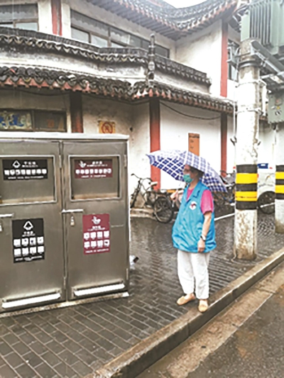 学宫居民区在垃圾分类推行过程中,充分发挥垃圾分类志愿者的作用,不断加强科学管理、形成长效机制、推动居民习惯养成。每一位垃圾分类志愿者恪尽职守、默默奉献,无论雷电风雨,始终坚守在垃圾分类岗位。在宣传一线,有他们的身影,他们用易学易懂的语言宣传垃圾分类的知识,纠正错误的认识;在实践一线,有他们的身影,他们准时到岗指导监督居民垃圾分类,纠正错误的做法。他们用自己的工作热情和实际行动,为建设美丽的老城厢贡献自己的力量。