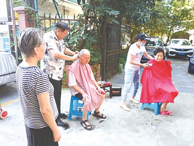 8月1日上午,方斜居委斜桥公寓的小花园里充满了欢声笑语,热闹非凡。原来这里正在开展为老人提供免费理发服务活动。 斜桥公寓,建于1991年是区第一幢高层建筑,大楼里居住的老人占很大比例,理发对小区里高龄、行动不便的老人来说一直是一个头痛的问题。80多岁的老肖便是其中一员,8点刚过他就由家人推着轮椅来到小花园了,他说要争取做第一个受服务者。9点不到,理发师出现了,让老人们惊奇的是这位理发师不是曾经来小区服务过的专业理发师,而是大家熟悉的小区业委会主任刘诚。只见他熟练地为老人围上布套,拿起理发工具,认真地剃起头来。旁边围观的居民均拍手称赞,纷纷夸赞刘诚手艺好。这时,小区里患重疾的居民郑大姐也被感动了,郑大姐在患病前曾自营一家理发店,她看到刘诚无私地为邻居们服务,她也拿出家里的理发工具和刘诚一起为大家服务。 8月初已入伏,天气闷热,烈日高照,但是刘诚和郑大姐却坚持为老人们服务,他们耐心地、认真地一个一个为老人服务,直到老人们满意。他们共为小区里20余位老人义务理发,邻居们都为他们的无私奉献点赞,并用手机拍下了这感人的一刻……