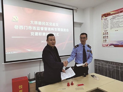 近日,大林居民区党总支与老西门市场监督管理所支部委员会举行党建联建结对仪式,签署党建联建结对协议。 本次党建联建活动本着“围绕中心、服务大局、优势互补、共同提高”的原则,坚持围绕服务好辖区居民这一中心工作,通过共建活动平台、分享工作资源、交流工作经验、解决实际问题等途径,积极构造双方党建工作新格局,实现区域内单位党建良性互动。 结对仪式过后,老西门市场监督管理所支部对大林辖区家庭困难学生进行资助帮扶,鼓励其继续努力学习、保持品学兼优的良好状态,该同学和家长向大林党总支和老西门市场监督管理所支部表示衷心地感谢。 未来,老西门市场监督管理所支部将继续为困难同学爱心助学。