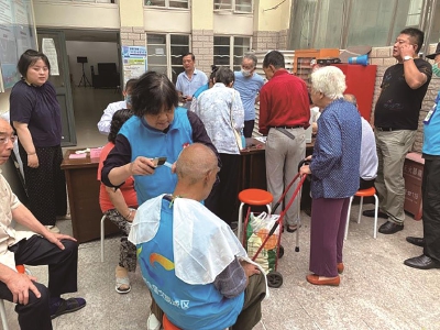 6月4日,小桃园居委会特邀华齿口腔医院的医生和辖区的志愿者在小桃园居委会开展免费便民服务。为居民们义务提供牙齿保健、理发、量血压和疫苗登记等服务。现场人头攒动,气氛热闹,居民在自家门口享受到了贴心的服务。