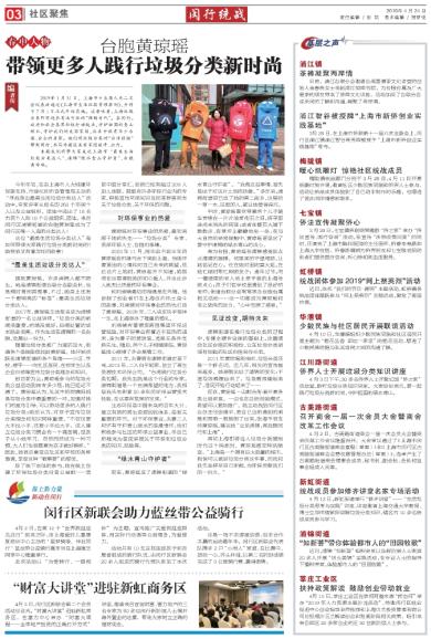 浦江镇 茶禅凝聚两岸情 日前,浦江台联分会邀请台湾善濡茶文化讲堂的创始人金春枝女士来到浦江恒南书院,为台胞台属及广大爱茶的朋友带来了茶禅文化讲座。活动加深了台联分会成员间的了解和沟通,凝聚了两岸情。 浦江智谷被授牌“上海市新侨创业实践基地” 3月28日,在上海市侨联第十一届六次全委会上,闵行区浦江镇浦江智谷商务园被授予“上海市新侨创业实践基地”称号。 梅陇镇 暖心纸雕灯 惊艳社区统战成员 梅陇镇统战部门分别于3月28日、4月11日开展纸雕灯制作课,邀请社区少数民族同胞和侨界人士参与。活动让统战成员体验到了自己动手制作的乐趣,也增进了彼此间的情感和联系。 七宝镇 侨法宣传凝聚侨心 3月29日,七宝镇侨联钢琴雅韵“侨之家”举办“侨法宣传、医疗咨询”活动,在宣传“涉侨政策问答”的同时,还请来了上海市胸科医院的主任医师、侨眷李寿勗和上海大学校医、侨眷陈渭娟为侨界朋友和七宝敬老院的长者们提供医疗咨询、听心肺和测血压服务。 虹桥镇 统战团体参加2019“网上祭英烈”活动 近日,依托“我们的节日·清明”主题活动,虹桥镇各统战团体踊跃参与“网上祭英烈”主题活动,激发了爱国热情。 华漕镇 少数民族与社区居民开展联谊活动 4月10日,华漕镇组织少数民族同胞和社区居民开展主题为“插花品香 团结一家亲”的插花活动,增进了少数民族同胞与社区居民之间的沟通了解。 江川路街道 侨界人士开展垃圾分类知识讲座 4月3日下午,30多名侨界人士齐聚红园“侨之家”活动室,聆听垃圾分类知识讲座。大家纷纷表示,要一起践行垃圾分类新时尚,守护祖国的绿水青山。 古美路街道 召开商会一届一次会员大会暨商会改革工作会议 4月2日,古美路街道商会一届一次会员大会暨商会改革工作会议隆重召开。大会审议通过了《上海市闵行区古美路街道商会章程(草案)》和《上海市闵行区古美路街道商会会费收缴管理办法(草案)》,选举产生了古美路街道商会理事会成员、秘书长、副会长、会长和监事会组成人员等。 新虹街道 统战成员参加修齐讲堂名家专场活动 4月12日,新虹街道举行“修齐讲堂”——“生活垃圾分类思考与实践”讲座,讲座邀请上海交通大学教授、博士生导师楼紫阳讲解垃圾分类知识,辖区内10余名统战成员参与学习。 浦锦街道 “知新荟”带你体验都市人的“田园牧歌” 近日,浦锦“知新荟”组织会员以及新阶层人士家庭20余人开展“田头美锦”实践活动,在专业人士的指导下播种荠菜,体验都市人的“田园牧歌”。 莘庄工业区 扶持政策解读 鼓励创业带动就业 4月10日,莘庄工业区在莘闵阿基米德“新空间”举办“2019年人力资源主题沙龙活动”,特邀闵行区就业促进中心创业指导老师张丽和上海贝兰投资管理有限公司总经理沙玉兰解读创业和发展阶段相关政策,吸引来来自园区20多家企业的近30位新阶层人士参与。