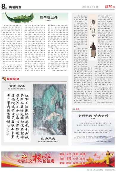 周善铸 今年全国人大、政协两会,代表们不再握手,而是拱手,令人眼睛一亮,印象深刻! 人类历史上,发生过三次鼠疫大流行,虽然起源地都不在欧洲,欧洲却都是死亡人数最集中最多的地方。比如暴发于14世纪四五十年代的第二次鼠疫大流行,发源于中亚地区,却导致欧洲2500万人死亡,占当时欧洲总人口三分之一。而这次新冠病毒肺炎,欧美又一次成为感染和死亡最大的重灾区。 照理说,欧美地区经济发达,地广人稀,生活水平高,卫生条件好,吃喝分餐制,结果却受灾最重。其缘由很可能与他们的社交方式有关,比如亲吻、贴面、握手、贴鼻等,这些行为都是瘟疫流行的“超级传播手”。为此,法国卫生部长建议,疫情期间不要握手和贴面;德国医学专家说,手是最容易接触到病毒的人体部位,建议“不要握手”;澳大利亚卫生官员则倡导用轻拍后背,或者碰肘、碰脚代替握手;每次疫情泛滥,意大利都是重灾区,他们的某位部长说得更为直白:“我们有太多握手、亲吻和拥抱。”他建议,“不妨学习亚洲人,见面、告别、致谢时不做身体接触,而用点头、拱手、鞠躬,或者双手合十。” 世界礼仪,大体可分身体亲密接触的欧美方式和身体保持距离的东方模式两大类。日本、朝鲜的深度鞠躬,印度、泰国、柬埔寨的双手合十,以及中华民族从上古时代起,就普遍流行的拱手、作揖和鞠躬,都不像西方人那样肉体亲近,而是保持人和人之间的距离表达敬意。 上世纪60年代,邓拓在《北京晚报》“燕山夜话”专栏上,写了一篇“握手与作揖”的杂文:“人手是最不干净的。因为人的一切活动,差不多都离不开手。出于卫生健康的考虑,我建议,朋友见面还是恢复古礼中的‘作揖’代替‘握手’为好。”当代人会议、聚会、交往繁多,需要同时会见多位朋友,握手往往排队进行,如果实行作揖,对着大家拱拱手,干净利落地就把心意表达了。 古代人在拱手致意时,往往还伴以“恭喜、恭喜”“久仰、久仰”“请多关照”“节日快乐”“后会有期”“抱歉、抱歉”等寒暄问候,加重了情感的气氛,极具中国特色。遗憾的是,近代以来,西风东渐,我国传统的揖礼、拱手礼,渐被西方的握手礼所代替。西方社交礼节固有其浪漫热情、洒脱开放的一面,但同时带来不够卫生、传染疾病的负面效果。 医学史告诫我们,每次流行病泛滥之后,人类总会吸取教训,变革一些不合理的生活习惯。这次也不例外,诸如勤洗手、不吃野生动物、吃饭用公筷或分食、排队提倡“一米线”等等,已被上海社会广泛接受,但握手的危害和改革的必要性,还没有被充分重视,甚至很少提及。 因此我郑重建议,痛定思痛、亡羊补牢,重拾我古代传统的“拱手礼”,取代西方的“握手礼”,以便有效预防各种传染性疾病的再次发生和传播,让更健康、更科学、更卫生的社交方式成为我们日常生活的社交习俗。 (作者系嘉和花苑小区居民)