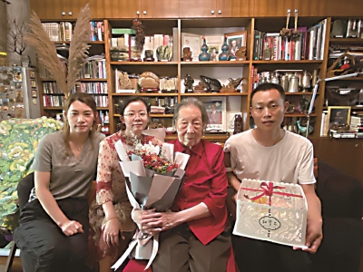 6月19日,华唐苑居民李韵仪迎来了100岁生日。居民区工作人员带着生日蛋糕和慰问品来到老人家中为老人庆生。老人家感谢大家为她过生日,这些年来子女们将她照顾得很好,她过得很舒心。“她对饮食没有太多讲究,家里做什么饭菜就吃什么,无论酸甜苦辣,从来不挑食。”老人家属说,“母亲耳不聋眼不花,什么事儿都明白,这几年除了行走不便,饮食等都还可以。母亲能这么长寿,与家里人和谐、友爱、真诚的生活态度是分不开的。”大家唱起生日歌,李韵仪老人在祝福声中度过了自己的百岁生日。