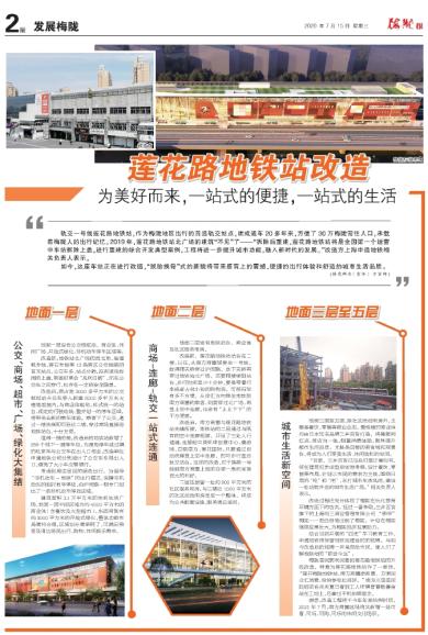 轨交一号线莲花路地铁站,作为梅陇地区出行的首选轨交站点,建成通车20多年来,方便了30万梅陇常住人口,承载着梅陇人的出行记忆。2019年,莲花路地铁站北广场的建筑“不见”了——“拆除后重建,莲花路地铁站将是全国第一个运营中车站拆除上盖,进行重建的综合开发典型案例,工程将进一步提升城市功能,融入新时代的发展。”改造方上海申通地铁相关负责人表示。 如今,这座车站正在进行改造,“脱胎换骨”式的新貌将带来感官上的震撼、便捷的出行体验和舒适的城市生活品质。 (镇党群办﹝宣传﹞方丽娜) 地面一层 公交、商场、超市、广场、绿化大集结 地面一层设有公交枢纽站、商业体、休闲广场、开放式绿化、非机动车停车区域等。 改造前,地铁站北广场的西北角,是莲枫专线、莲石专线等13条跨区公交线路的首末站点,公交车多、站点分散,没有遮风挡雨的上盖,乘客时常会“风吹日晒”,而在公交车之间穿行,也存在一定的安全隐患。 改造后,原占地3000多平方米的公交枢纽站点往东移入新建6000多平方米大楼地面层内,与商业体毗邻,样式统一的站台、规定的行驶动线、整齐划一的停车区域,将带来全新的乘车体验。乘客下了公交,通过一楼扶梯即可到达二楼,穿过商场直接进地铁站台,十分方便。 值得一提的是,改造后的地铁站新增了258个地下一层停车位。为避免停车或过境的私家车与公交车在出入口相会,改造单位申通地铁公司分别设计了公交车专用出入口,避免了大小车交替混行。 考虑到周边居民的绿色出行,为倡导“非机动车+地铁”的出行模式,保障非机动车的临时有序停放,沿沪闵路一侧专门划出了一条非机动车停放区域。 建筑面积3.1万平方米的休闲生活广场,地面一层中间区域为约4000平方米的商业体(含餐饮及大型超市),东西两侧有约3000平方米的开放式绿化,整体功能布局简约合理,区域划分简单明了,可满足乘客及周边居民出行、购物、休闲娱乐需求。 地面二层 商场-连廊-轨交一站式连通 地面二层设有地铁站台、商业体及社区服务用房。 改造前,莲花路地铁站站台在二楼,以往,从南方商圈想要坐一号线,就得爬天桥穿过沪闵路,走下天桥再穿过地铁站北广场,还要爬楼梯到站台,步行时间至少十分钟,要是带着行李或者大包小包的购物袋,可想而知有多不方便。从徐汇方向乘坐地铁到南方商圈的乘客,则要穿过北广场,再登上空中连廊,也会有“上上下下”的不方便感。 改造后,南方商圈与莲花路地铁站无缝衔接,地铁站的二层通过与既有的空中连廊相接,开设了三处人行通道,连接起中庚环球创意中心、漫游城、百联南方、莲花国际,只要通过自动扶梯登上空中连廊,即可步行直达轨交站台。这样的改造,对于换乘一号线到南方商圈上班的白领一族而言是很大的利好。 二层还预留一处约900平方米的社区服务用房,与三楼近1000平方米的社区活动用房连成一个整体,将成为公共配套设施,服务周边居民。 地面三层至五层 城市生活新空间 地面三层至五层,除社区活动用房外,主要是餐饮、零售等商业业态。整栋楼的商业体均由日本知名品牌三井百货打造,将集聚网红店、首店为一体,侧重消费体验,聚焦提升都市生活品质。尤其是四楼的美食城和观景台,将成为人们享受生活、休闲放松的空间。 “目前,三井百货已与我们签订意向书,将在建筑初步成型后实地考察,设计餐饮、零售等布局,计划以市民的需求为主线,围绕日常的‘吃’和‘用’,主打城市生活风尚,建设一处功能齐全的城市生活广场。”相关负责人表示。 改造过程还充分体现了梅陇在优化营商环境方面下的功夫。经过一番争取,三井百货旗下的上海闵三商业管理有限公司“移师”梅陇——把注册地迁到了梅陇,计划在梅陇继续发展壮大,为梅陇经济发展助力。 结合当前开展的“四史”学习教育工作,申通地铁将保留地铁站建设时的铭牌,与如今改造后的铭牌一并呈现给市民,使人们了解地铁站的“前世今生”。 梅陇居民郭利民看到莲花路地铁站的升级改造,特意为莲花路地铁站作了一首诗,“莲开梅陇地铁站,南方商圈添新景。方便民众忙消费,纷纷争夸此间好。”南方三居居民阮绍武在炎炎夏日看到工人师傅冒着酷暑奋战在工地上,还拿出手机拍照留念。 据悉,改造工程将于今年年底结构封顶。2021年7月,南方商圈区域将又新增一处可看、可玩、可购、可乐的休闲文化场所。