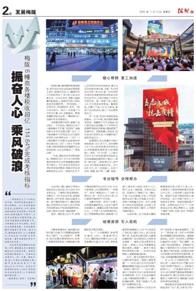 一场疫情打乱了人们的生活节奏,对经济发展也造成了很大的影响,为了尽快实现经济复苏,企稳回升,今年,梅陇始终把税收作为经济工作的风向标,经济发展的“牛鼻子”,以更多的温度优化营商环境,更大的力度推动安商稳商工作,不断激发企业内生动能,助力企业高质量发展。尤其在商务楼宇的招商引资方面,截至9月,梅陇跑在闵行14个街镇前列,率先完成“亿元楼”全年考核任务,楼宇实租面积单位产税排名全区第一。 先来具体看看梅陇的成绩单。今年,梅陇镇已有6幢商务楼完成亿元税收任务:分别是百联南方购物中心、中庚环球创意中心、华一大厦、梅美大厦、集心大厦和九润商务大厦。楼宇实租面积单位产税4016.23元/平方米,完成全年度考核任务的114.64%,两项指标完成率在闵行14个考核街镇中排名第一。 (镇党群办﹝宣传﹞方丽娜) 暖心帮扶 复工加速 疫情初期,梅陇镇积极筹措物资,想方设法为企业创造必要的复工条件,就楼宇而言,21幢楼宇在3月底前完成了98%的入驻企业复工率。对企业而言,早复工就能赢在起跑线上,就能尽快投入常态的经济发展秩序,一手抓防疫,一手抓经济,两手都抓早、抓好。“据不完全统计,我们一共准备了5万多只口罩,300支额温枪,都是免费配送给企业的。”镇招商中心企服科科员孙强表示。 这就像是雪中送炭,温暖了企业的心。不仅如此,梅陇还出台了《梅陇镇关于开展“创园贷”金融创新合作项目实施方案(试行)》《梅陇镇关于初创型企业实施财政项目化扶持的办法(试行)》《梅陇镇关于民营企业租赁扶持的实施办法(试行)》等4个政策方案,积极贯彻落实疫情期间企业扶持政策,为企业争取到了“真金白银”。 一方面,提前兑现专项扶持资金。根据闵行区《关于全力防控疫情支持服务企业平稳健康发展的若干意见》关于加快兑现财政专项扶持资金的要求,梅陇对符合政策要求的企业在一季度内优先予以兑现相关财政扶持资金,通过与区财政的沟通对接,采取“先兑付后补材料”的方式,第一时间将符合相关政策要求的扶持资金兑现到企业手中,比平时提前了半年左右的时间,第一季度下拨4批次1.31亿元财政扶持资金。截至目前,已累计下拨1.62亿元资金,盘活了企业资金池,减少了企业的资金压力。 另一方面,适当补助减免租金的损失。对于中庚、莲花国际等楼宇而言,商圈租户交不出租金,他们的利益无法保障,为了共同应对疫情带来的经济影响,梅陇搭建了沟通平台,采取商圈让利租金、政府适当补助的方式,为商圈和租户减轻资金压力。 疫情期间,各大商圈共为租户减免租金1600多万元,政府按照《关于全力防控疫情支持服务企业平稳健康发展的若干政策措施》(简称“沪28条”)、《闵行区关于全力防控疫情支持服务企业平稳健康发展的若干意见》(简称“闵十条”)的政策文件,给予企业30%的租金减免补助,共计565万元,在一定程度上,实现了政府、商圈、租户的“三赢”局面。 专业指导 全程帮办 与此同时,镇三套班子领导分别组成企业走访组,深入走访800多家企业,了解他们的急难愁盼,共解决了187件企业诉求,涵盖疫情防控、对外贸易、物流运输等方面。其中梅陇招商中心、属地的翔梅公司等单位为任虹公司在两周内完成转型生产防疫面罩的申报,创造了服务企业的“梅陇速度”。 值得一提的是,2020年,新落户梅陇的楼宇企业中已产生1000万新税收,这与梅陇贯彻“一网通办”、研发“商服店小二”APP方便企业,进一步加大走访力度、优化营商环境是密不可分的。 丛麟环保是一家专门从事工业危废处置的单位,入驻在中庚环球创意中心。随着企业的不断发展壮大,上市成了企业的发展目标。但上市需要哪些资料,要跑哪几个部门,要走多少流程、花多少人力、物力,企业一筹莫展。在走访企业时,招商中心了解到了这一情况,于是,为企业跑腿,对标上市标准指导企业开展上市准备工作成了招商干部的重点工作。如今,疫情进入常态化防控阶段,企业的上市方案也顺利完成了提交,上市的步伐越走越近。 无独有偶,位于梅美大厦的载德信息科技公司不久将上市,这家致力于通信领域的高科技新生代公司,公司负责人居住在梅陇,曾每天往返于梅陇和张江高科技园区。由于厌倦了每天上下班的舟车劳顿,选择到梅陇落户经商。没想到由此打开了一片新的创业天地,事业蒸蒸日上,诠释了梅陇“宜居、宜商、宜业”的美好家园形象。 统筹资源 引入商机 为繁荣商圈经济,梅陇镇与区相关部门沟通,在中庚漫游城商街举办了闵行“五五购物节”开幕式,吸引区镇主要领导到访,获得了直播带货的机会,为梅陇南方商圈的经济复苏造势。 “五一”小长假期间,客流同比增加108%,销售额同比130%;漫游城会员增长240%;抖音直播时长超过20小时,单款直播带货销售超过1000件;场地及广告位收入增长93%;新入驻品牌8家,在品牌业绩方面,大龍發記漫游城门店业绩居总公司排名全国第一,蹦床公园业绩居华东区第一,麦麦山、乐友孕婴童等品牌业绩居上海第一,高老九等品牌业绩居闵行第一,热风时尚品牌线上直播销售创新高。 此外,锦江乐园的夜市经济、江南吃货节活动、“我的小康我幸福”——2020闵行区市民合唱节暨梅陇镇第四届社区合唱节展演、“我预见·遇见你”——2020第二届长三角青年交友大会等各类夜市消费购物、文艺、交友活动精彩上演,与梅