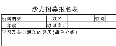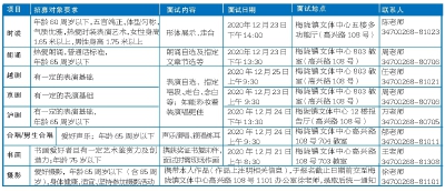 为了丰富梅陇镇百姓的业余生活,让百姓有展示自我和交流学习心得的平台,推动本镇群众文化精品团队发展,梅陇镇文体中心将进行时装、朗诵、越剧、京剧、沪剧等九大沙龙招募,欢迎居民踊跃报名参加,具体事项见表格:
