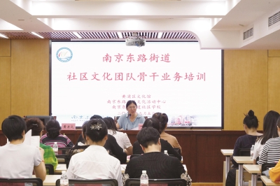 近日,南京东路街道社区文化团队骨干业务培训正式开班,居委文教主任、社区各文体团队队长和骨干等共80余名学员参加了培训。 本期培训共四个半天,邀请了市委党校教授黄力之、上海格物文化发展研究院院长符湘林、市群众艺术馆培训部主任徐皓和区文学艺术联合会理事项震4位专家,为社区团队和学员进行培训。区第一社区教育中心主任、街道社区学校常务副校长丁红作开班动员。 培训期间,学员们认真听讲,将重点、要点仔细记下来,并在关键处用手机拍照记录,学员手册上满页的笔记,工整的字迹,都是学员们在本期培训期间的收获。 黄浦区文化馆馆长孔晓敏、副馆长徐之宾,丁红出席了本期培训的结业仪式。孔晓敏对此次培训的圆满结束表示祝贺,对四位专家的辛勤付出表示感谢,勉励各位学员将此次培训中所学知识运用到实践中去,为社区文化建设贡献自己的力量。 (发展办)