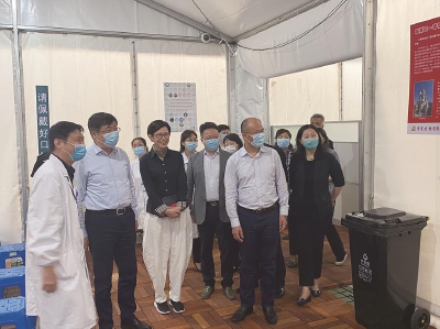 5月12日下午,中共黄浦区委书记杲云,副区长李原、杨东升等区领导一行来到市百一店8楼临时疫苗接种点,调研并慰问持续奋战在疫苗接种一线的医护工作者、社区志愿者以及各单位现场保障人员。 南京东路街道党工委书记顾定鋆和相关负责人现场陪同。杲云逐一走访调研了接种区、留观区等区域的运转情况,与一线接种医护人员沟通交流,对医护人员、各方社区志愿者以饱满的精神状态投入到疫苗接种工作、巩固疫情防控成果、保障居民群众生命健康安全表示高度肯定由衷感谢。 市百一店临时疫苗接种点位于人流量密集的南京东路步行街,南京东路街道充分发挥其区位优势和辐射效应,每天持续为周边楼宇白领、商场员工和社区居民提供常态化的接种服务,深受广大市民群众的欢迎。 南京东路街道将坚决贯彻落实区委、区政府的工作部署,持续在提高接种意愿、提高接种能力上下功夫,强化逐户动员、精准对接保障,不断提升辖区内疫苗接种率,筑牢南东免疫屏障。(管理办)